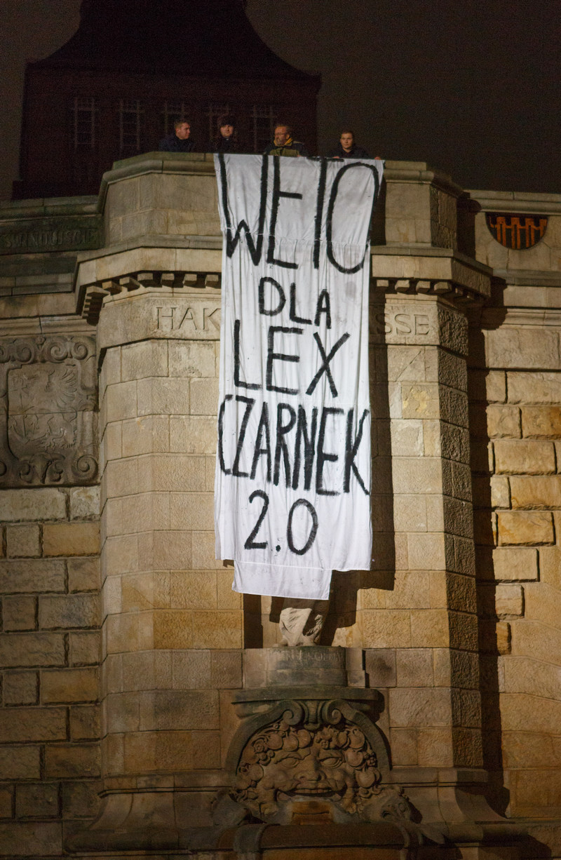 Transparent z napisem "WETO DLA LEX CZARNEK 2.0" zawisł w poniedziałkowy wieczór (5 grudnia) u stóp szczecińskich Wałów Chrobrego. W ten sposób swój protest wyrazili przeciwnicy zmian w ustawach dotyczących systemu polskiej edukacji, forsowanych przez obecny obóz rządzący oraz ministra edukacji i nauki Przemysława Czarnka.