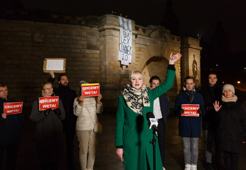 - Mamy nadzieję, że tym razem również stanie pan po stronie uczniów, uczennic, ich zmartwionych rodziców, nauczycielek i nauczycieli - i powie WETO! Liczmy na Ciebie, jak zrobiłeś to poprzednio. Młodzi ludzie chcą Polski demokratycznej, nowoczesnej, europejskiej, otwartej. Lex Czarnek jest niczym innym jak próbą kontroli wolnej, polskiej szkoły. Panie prezydencie Andrzeju Dudo, prosimy zawetuj. Możesz zachować się w sposób honorowy – apelowała Dagmara Adamiak z Fundacji RÓWNiE w obecności kilkunastu zgromadzonych osób, trzymających w dłoniach kartki z nawoływaniem „Chcemy weta!”.