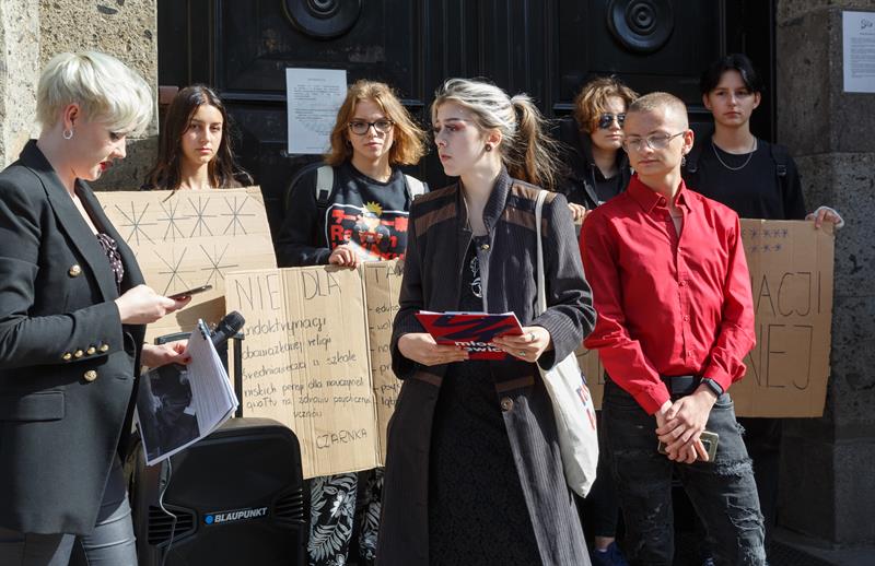 - Protestowaliśmy na rzecz wolnej miłości, dzisiaj protestujemy na rzecz wolnej szkoły, bo to kolejny cel władzy - mówiła do zgromadzonych Dagmara Adamiak, założycielka Fundacji RÓWNiE. - Protestujemy przeciwko projektowi ustawy zmieniającej prawo oświatowe. Będzie on skutkował odebraniem niezależności szkołom. Ten projekt chce wprowadzić minister Czarnek. Przypomnę, że niezależność sądów została już odebrana. Kurator podległy ministrowi będzie mógł decydować o tym, kto będzie dyrektorem szkoły. Będzie można odwołać dyrektora bez wypowiedzenia. To politycy będą o tym decydować. Nie zgadzamy się z tym.