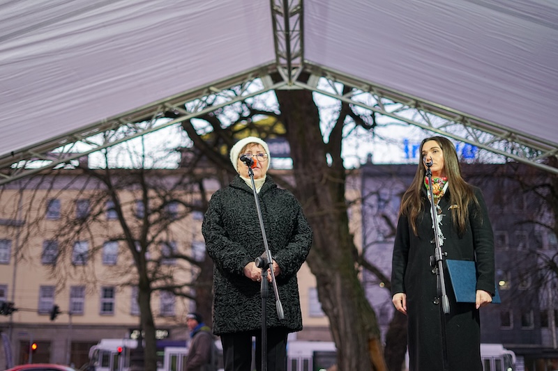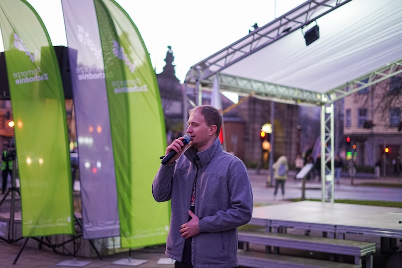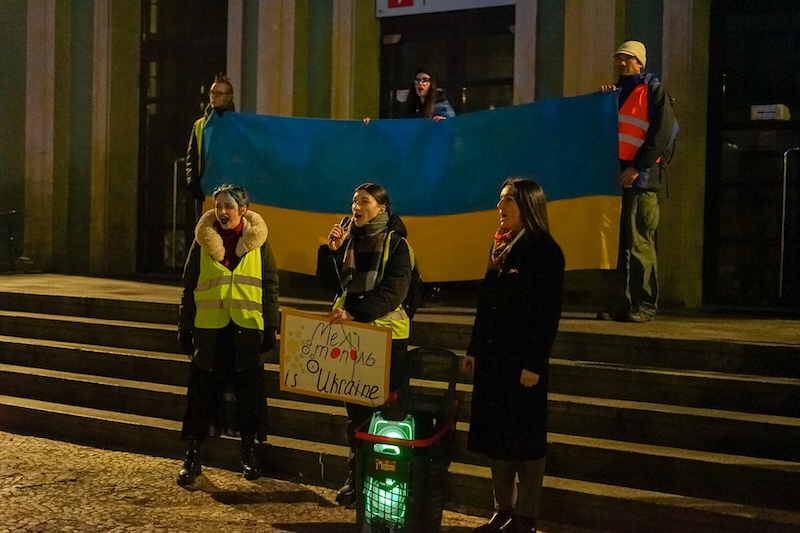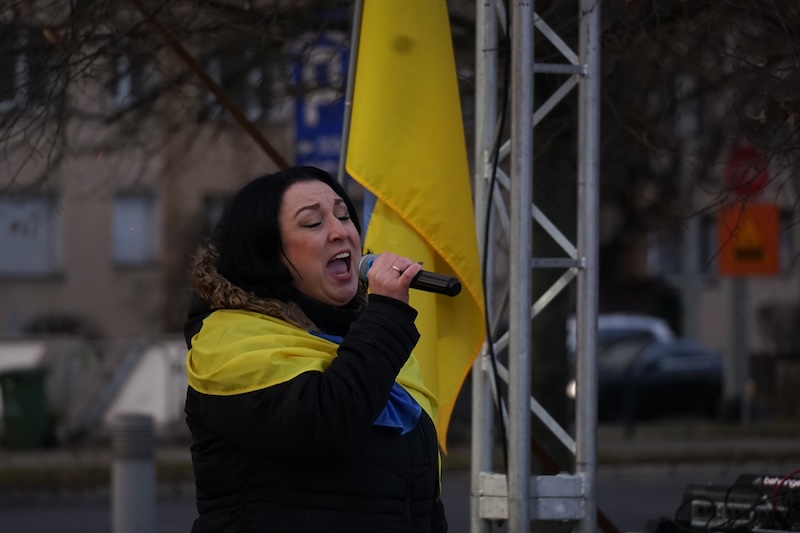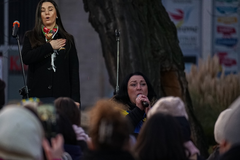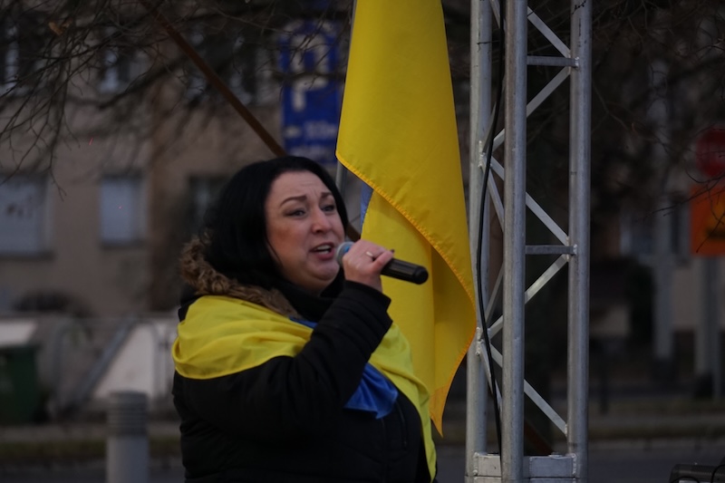 - Jutro jest ta tragiczna trzecia rocznica, kiedy wszyscy obudziliśmy się i do tej pory nie wierzymy, czy to sen, czy to rzeczywistość – mówiła ze sceny Katerina Zavizhenets. - Ale niestety to trwa do dziś. Do dziś przeżywamy te trudne emocje, których nie możemy odpuścić ani przeżyć, póki to trwa. I dziś przede wszystkim też wychodzimy, żeby przypomnieć sobie o tym, kto jest tak naprawdę wrogiem i kto musi ponieść konsekwencje za popełnioną zbrodnię. Rosja, kraina terrorystów! I to musi mocno dzisiaj wybrzmieć. Do Trybunału Międzynarodowego musi iść zbrodniarz.