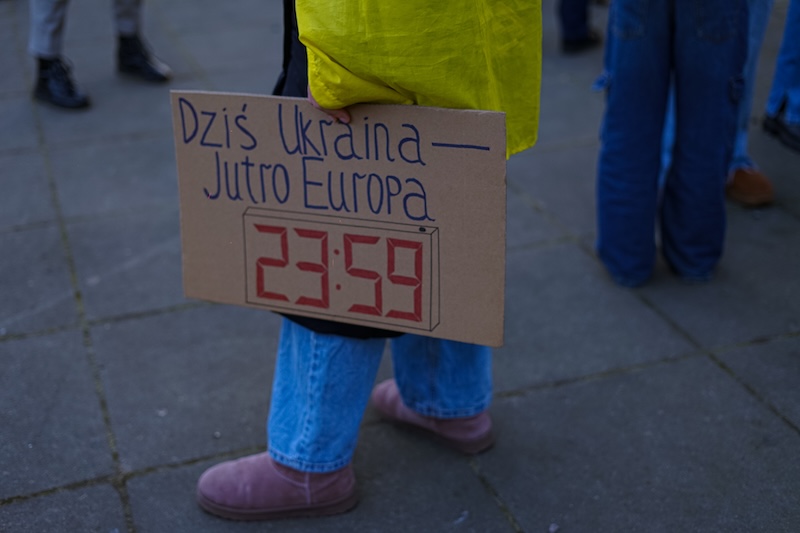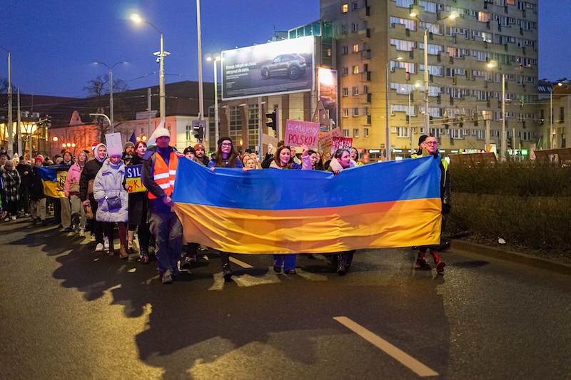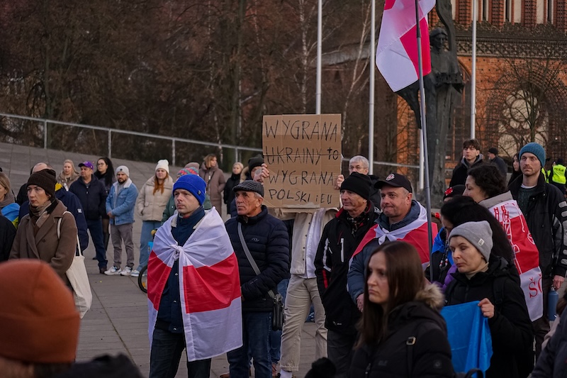 - Trzy lata spotykamy się na tym placu, solidaryzując się z walczącą Ukrainą. Ten rok jest dla nas rokiem wyjątkowym: mamy osiemdziesięciolecie zakończenia drugiej wojny światowej i wydawałoby się, że pokoju w Europie – mówiła. – Niestety, od Wschodu nie mamy tego pokoju. To, co się dzieje w naszej rzeczywistości, przeraża dlatego, że niektórzy politycy zachowują się tak, jakby nie pamiętali 24 lutego trzy lata temu. Reagują zupełnie inaczej na codzienność, na rzeczywistość, obarczając czy to Ukrainę, czy elity europejskie łącznie z naszym premierem Tuskiem za wywołanie tej wojny. Nikt nie zapomni, że to jest wojna rozpoczęta przez Rosję.