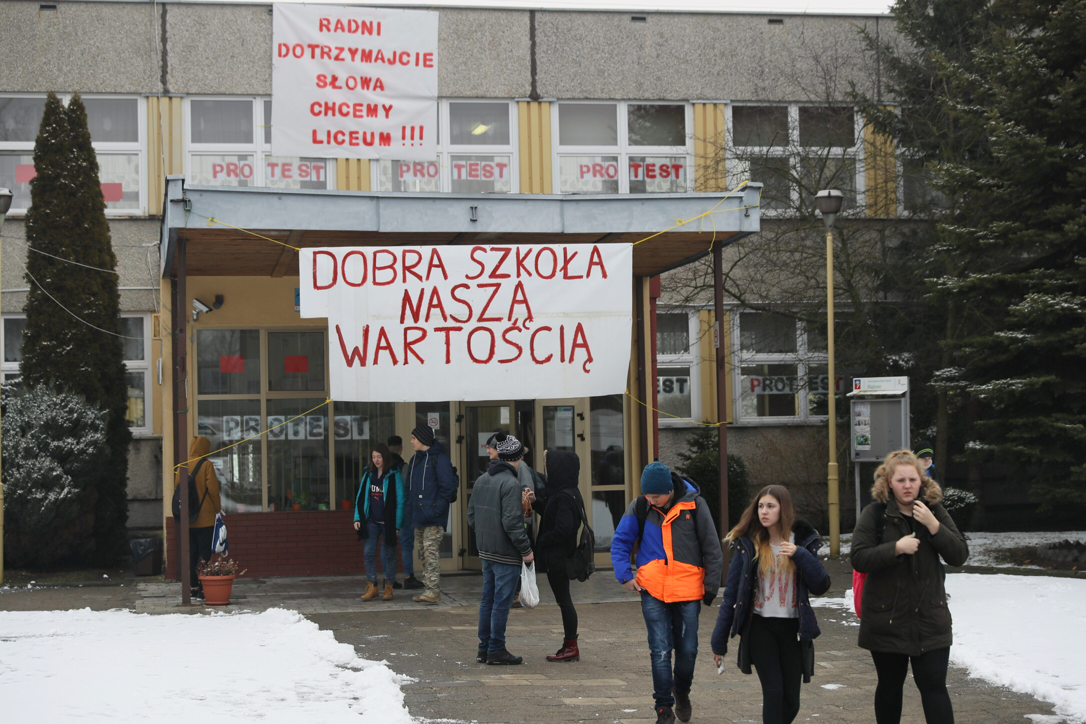 W szczecińskim Gimnazjum nr 7 odbywa się protest m.in. nauczycieli za utworzeniem w tym miejscu liceum. Na budynku zawieszono transparenty, m.in.: „Liceum na Majowym!”, „Miał być dialog, jest monolog”, „Dobra szkoła naszą wartością”, a w każdym oknie wisi kartka z napisem: „protest”.