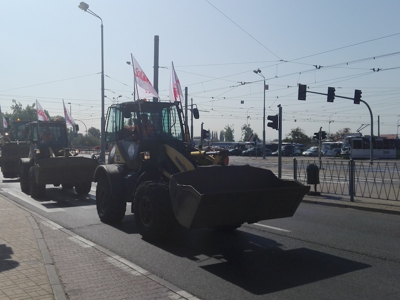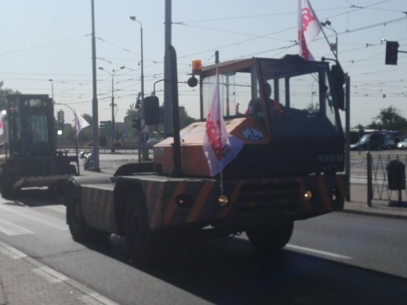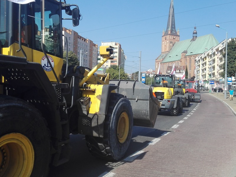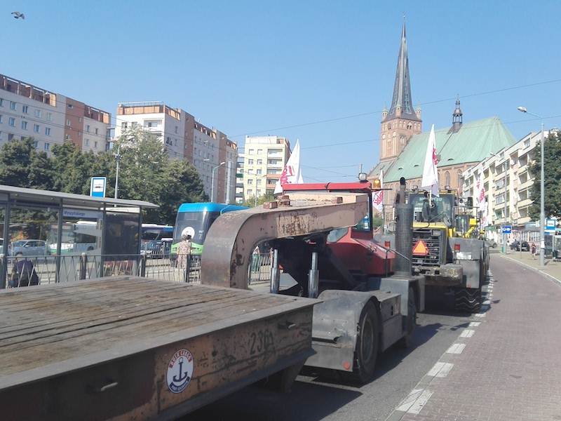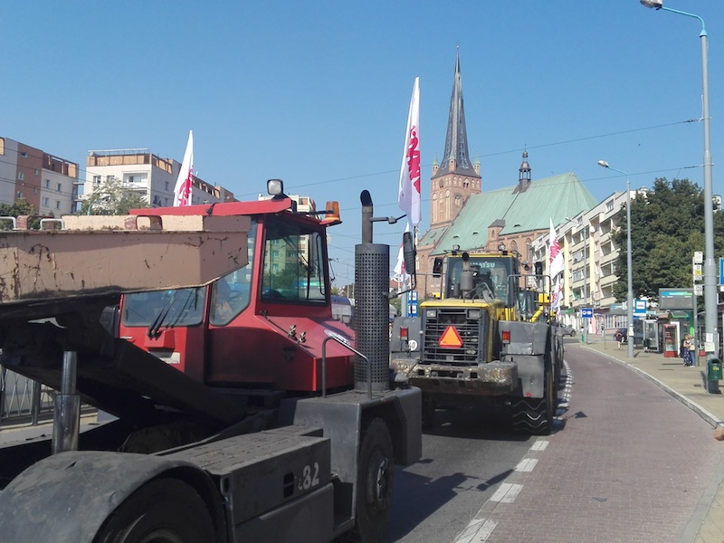 Protestujący pracownicy portowych spółek w czwartek przed południem wyjechali na ulice Szczecina. Przejazd ciężkiego portowego sprzętu częściowo zablokował przejazd m.in. ul. Wyszyńskiego.