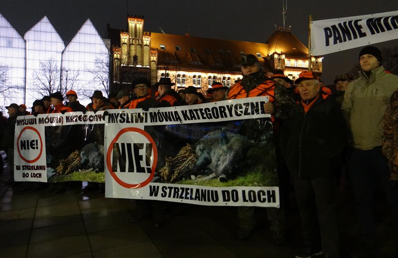 Wśród uczestników piątkowej manifestacji w Szczecinie była również silna reprezentacja myśliwych okręgów: szczecińskiego i koszalińskiego. W mundurach polowych, kamizelkach odblaskowych i z transparentami: „Myśliwi mówią STOP bezmyślnemu odstrzałowi dzików", „Panie ministrze - myśliwi to nie kaci", „Przywrócić okresy ochronne dla lochy!", „Myśliwi mówią kategoryczne NIE strzelaniu do loch", a nawet: „Popieramy postulaty BASTY!"