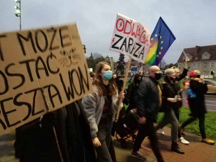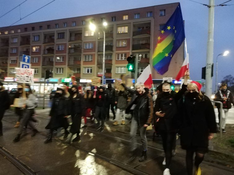 Mamy was dość! Oddajcie nam prawa! Rewolucja jest kobietą - krzyczeli młodzi ludzie idąc z transparentami w piątkowe popołudnie przez ulice Szczecina. Marsz, organizowany przez lewicową młodzież, rozpoczął się na Wałach Chrobrego, zmierza na ul. Mickiewicza, pod siedzibę PiS. Uczestnicy mówią o tym, o co walczą, co chcą zmienić i dlaczego wciąż się nie poddają.