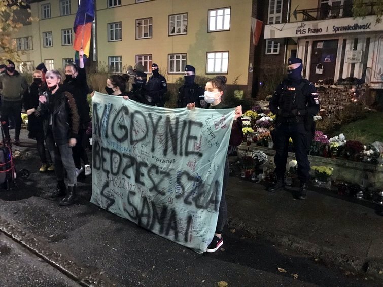 Z Wałów Chrobrego pod siedzibę Prawa i Sprawiedliwości - taką trasę przebyli w piątkowy wieczór uczestnicy Strajku Kobiet. Pod siedzibą PiS odprawili „ceremonię pogrzebową".