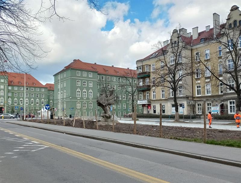 Miejsce starych zajmą nowe nasadzenia. Za lipy drobnolistne - lipy srebrzyste. Natomiast pod koronami drzew pojawić się mają róże okrywowe (‘Marathon’ i ‘The Fairy’), laurowiśnie wschodnie oraz trawy ozdobne (rozplenica japońska). Część sadzonych do ziemi, a część w pojemnikach. "Nasadzenia zaprojektowano w systemie pasowym, aby zachować harmonię oraz podkreślić reprezentacyjność miejsca" - jak stanowi projekt nasadzeń. W nim też uwzględniono odtworzenie ponad 400 mkw. trawnika, który zostanie zniszczony w trakcie przebudowy oraz wysianie kolejnych - łącznie na ponad 100 mkw.