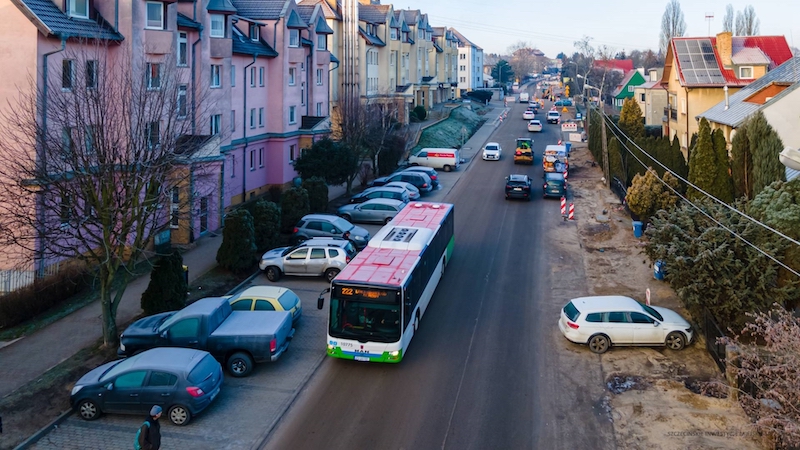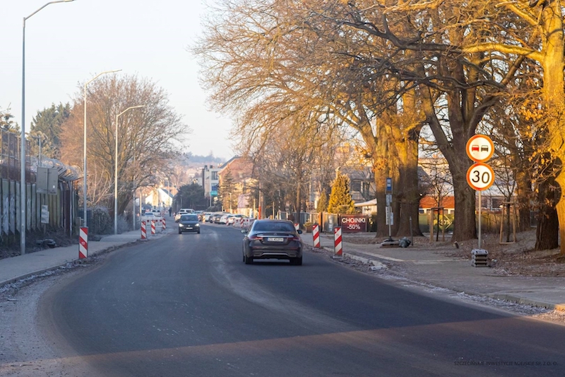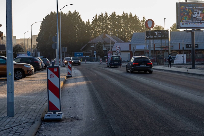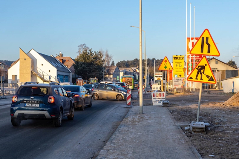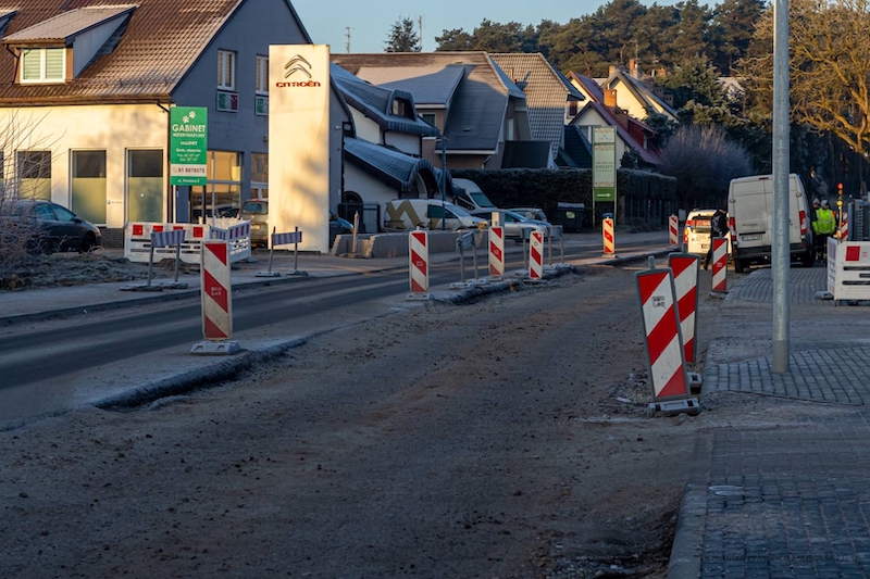 Większość zadań skupia się na pracach sieciowych i teletechnicznych, układaniu kabli, wykonywaniu przejść teletechnicznych. Wciąż obowiązuje ograniczenie ruchu i ruch wahadłowy na odcinku od wysokości sklepu Netto do ulicy Zaściankowej. W przebudowie jest połowa jezdni. Brakujący fragment zostanie wyasfaltowany za kilka tygodni. Wykonywane są ponadto chodniki i wjazdy do posesji. Wykonawcą robót jest STRABAG Sp. z o.o.
