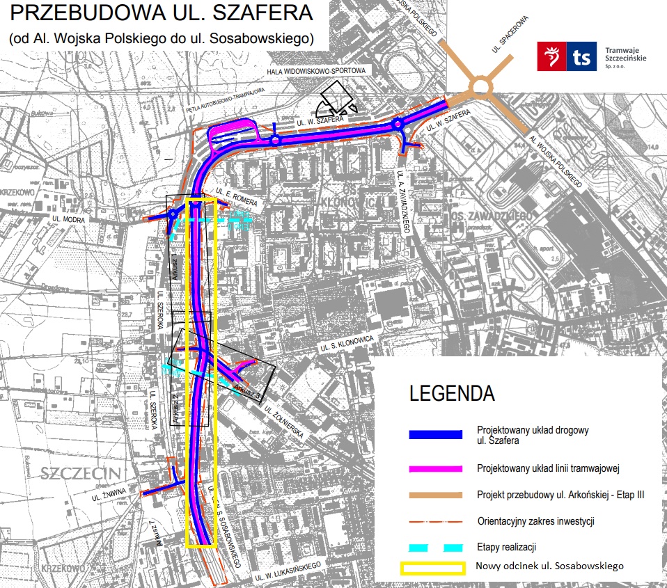 II i III etap przebudowy ulicy Szafera (od skrzyżowania z ul. Romera i ul. Modrą do ul. Sosabowskiego) to kolejna bardzo ważna inwestycja drogowa i tramwajowa w Szczecinie, która znacząco poprawi komunikację w rejonie ul. Szerokiej oraz dojazd do Bezrzecza i Osiedla Zawadzkiego. Długość szczecińskich torów tramwajowych zwiększy się o dwa kilometry, dzięki czemu linie tramwajowe, które kończyły bieg na nieistniejącej już pętli Krzekowo zostaną wydłużone do pętli na os. Zawadzkiego.