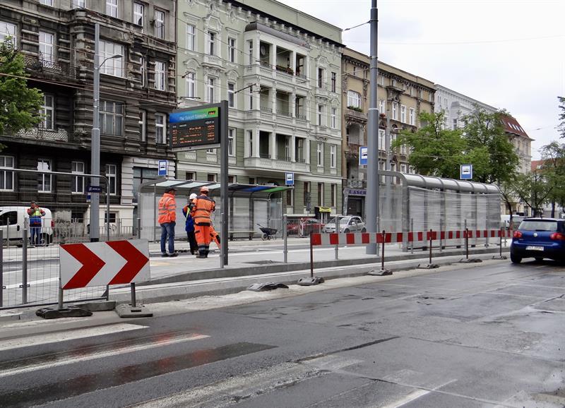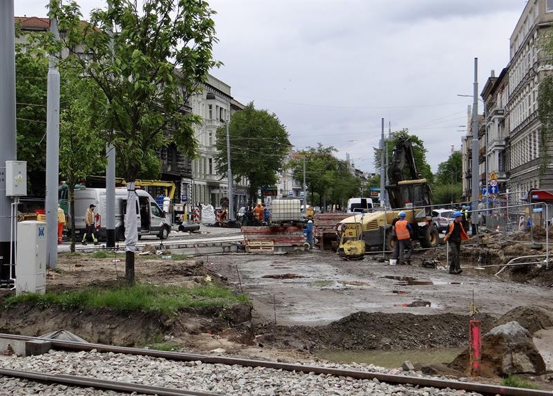 W minionym tygodniu na nowych słupach rozwieszona została sieć trakcyjna. Ruszyły jednocześnie prace ziemne przy usypywaniu podbudowy ostatniego z fragmentów torowiska w relacji do al. Piastów oraz przy uzbrajaniu terenu w odcinki nowych instalacji. Jak choćby od wczoraj to m.in. wymiana na nową sieci wodociągowej. Na ustawienie czekają ostatnie słupy sieci trakcyjnej. Do uporządkowania pozostają również rejony rozkopanych jeszcze w związku z robotami przy uzbrojeniu chodników na wysokości prawoskrętów z al. Wojska Polskiego w al. Marszałka Józefa Piłsudskiego i od wyjazdu z tej ostatniej na plac i w kierunku ul. Wielkopolskiej.