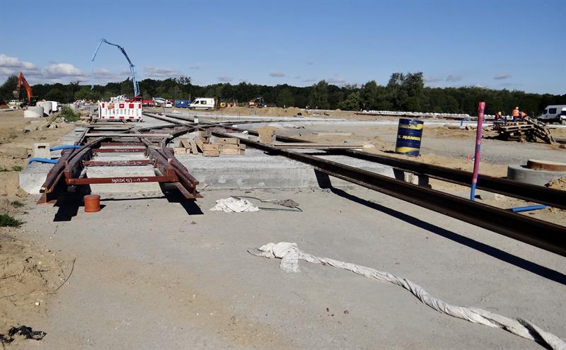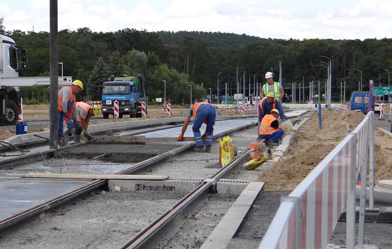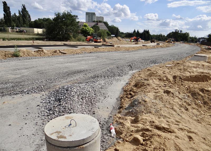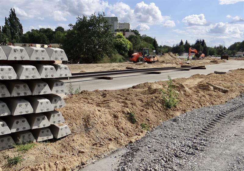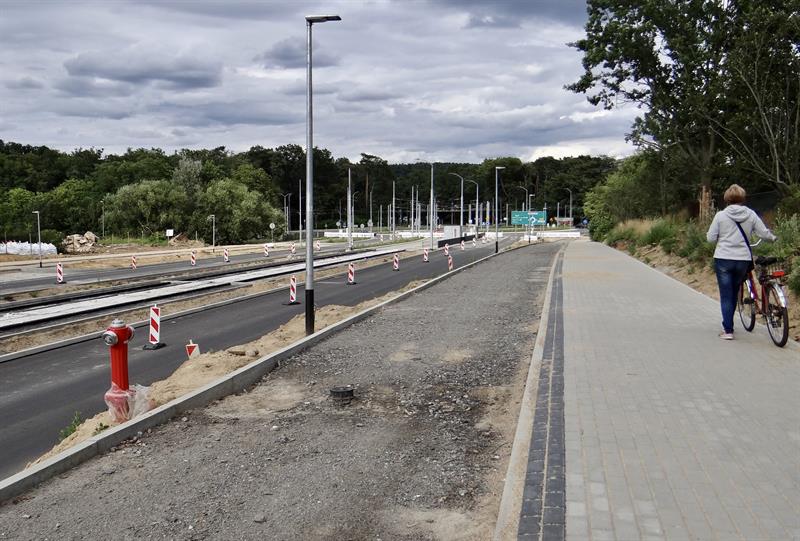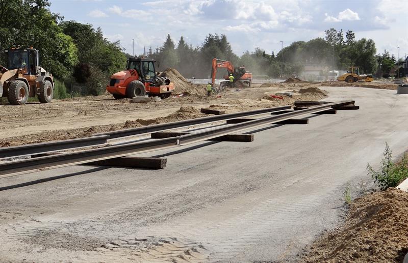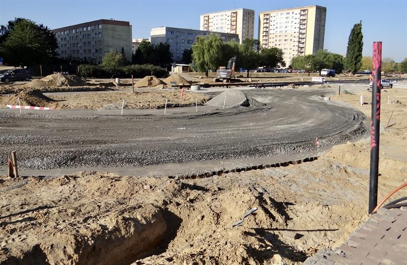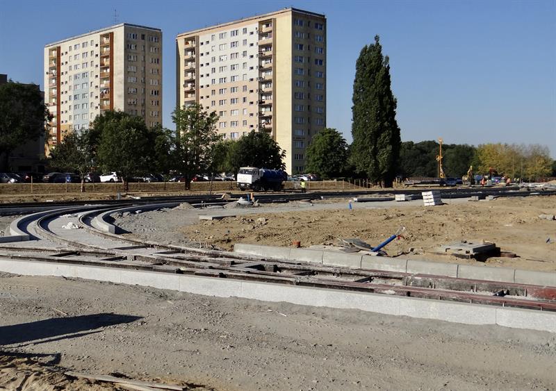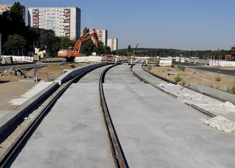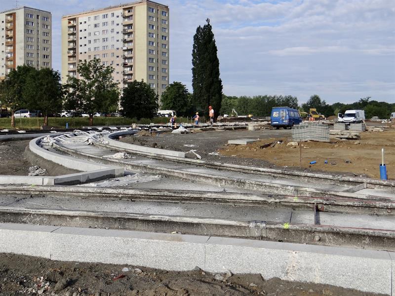 Z torami do urządzanej nowej pętli drogowcy dotarli już w połowie lipca. Z ich montażem wraz z rozjazdami ekipy spółki Stanled, jednego z podwykonawców zatrudnionych przy inwestycji, teraz wychodzą „na prostą", co oznacza układanie na podkładach i spawanie szyn wzdłuż przyszłych czterech peronów dla tramwajów. Trwa betonowanie dolnej warstwy podbudowy torów i osadzanie ich w niej tam, gdzie zostały dotąd przygotowane - aż za łuk w kierunku ul. Eugeniusza Romera. Między gotowymi odcinkami torów wykonane zostały też prace brukarskie na jednym z parkingów, tym od strony ul. Franciszka Jarzyńskiego. Pod drugi z parkingów, na obrzeżach powstającej pętli, szykowana jest warstwa konstrukcyjna pod nawierzchnię.