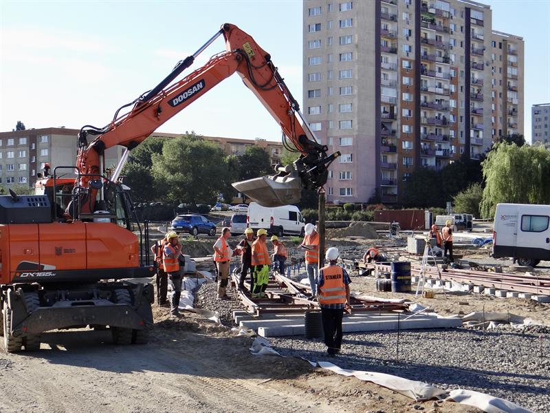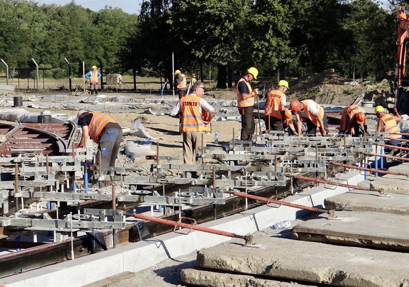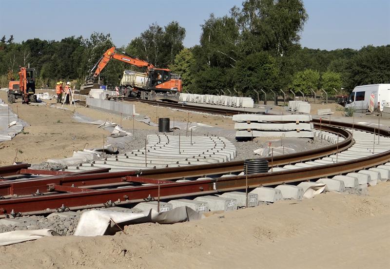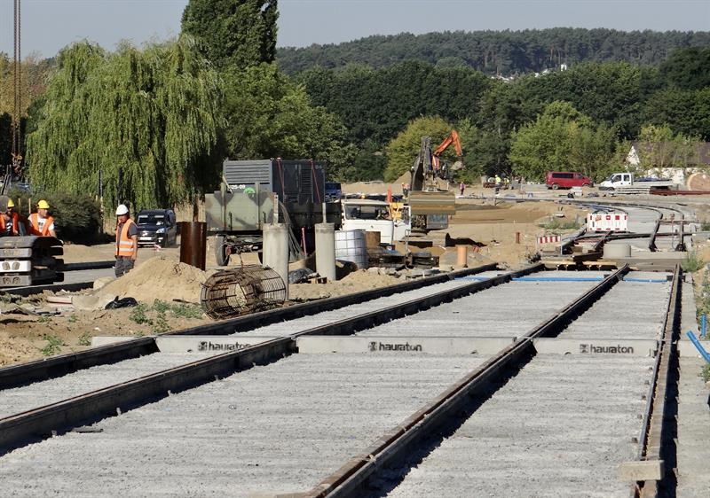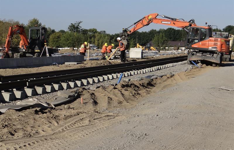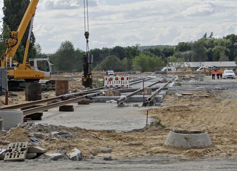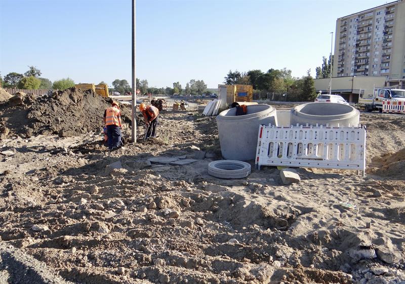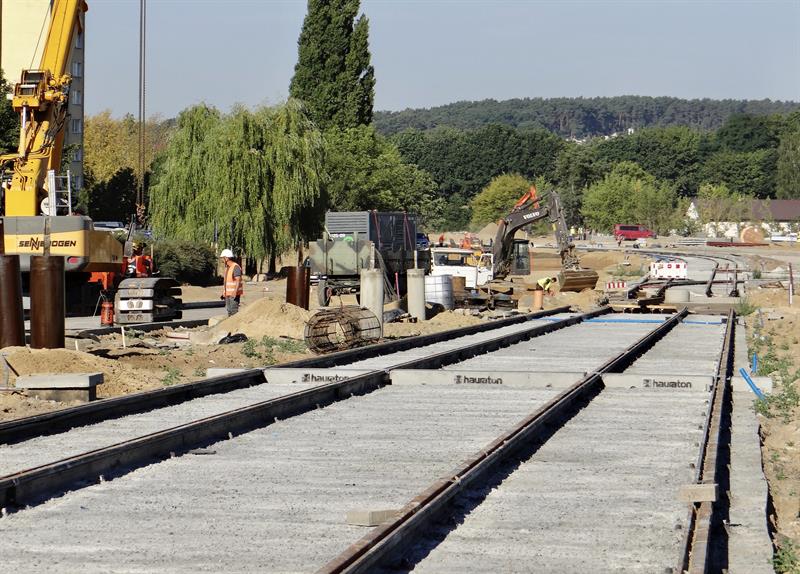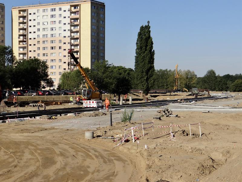 Z torami do urządzanej nowej pętli drogowcy dotarli już w połowie lipca. Z ich montażem wraz z rozjazdami ekipy spółki Stanled, jednego z podwykonawców zatrudnionych przy inwestycji, teraz wychodzą „na prostą", co oznacza układanie na podkładach i spawanie szyn wzdłuż przyszłych czterech peronów dla tramwajów. Trwa betonowanie dolnej warstwy podbudowy torów i osadzanie ich w niej tam, gdzie zostały dotąd przygotowane - aż za łuk w kierunku ul. Eugeniusza Romera. Między gotowymi odcinkami torów wykonane zostały też prace brukarskie na jednym z parkingów, tym od strony ul. Franciszka Jarzyńskiego. Pod drugi z parkingów, na obrzeżach powstającej pętli, szykowana jest warstwa konstrukcyjna pod nawierzchnię.