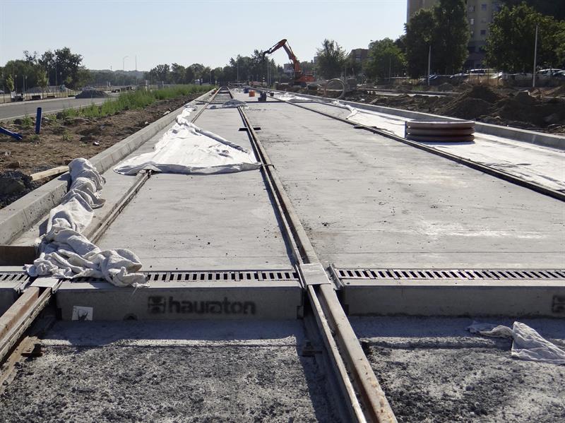 Równocześnie od ronda Jana Olszewskiego w kierunku nowego ronda Szczecińskich Olimpijczyków do skrzyżowania z ul. Franciszka Jarzyńskiego od kilku tygodni trwa stopniowe zalewanie betonem płyty głównej na gotowym już pasie torowiska. Przybywa wyłożonych kostką fragmentów chodników. Te do ronda Szczecińskich Olimpijczyków są gotowe. Z pracami brukarskimi drogowcy przenieśli się w pas chodnika w sąsiedztwie parkingów przy blokach, naprzeciwko hali Netto Arena. Od jej strony urządzony ma być tylko pas nowej drogi rowerowej, który podobnie jak pozostałe jej odcinki po bu stronach zostały wytyczone i w części z warstwą podbudowy czekają na wylanie jeszcze nawierzchni. Tam, gdzie to możliwe montowane są nowe latarnie. Rozpoczęły się też prace w miejscach, gdzie zaplanowane zostały nowe przystanki.