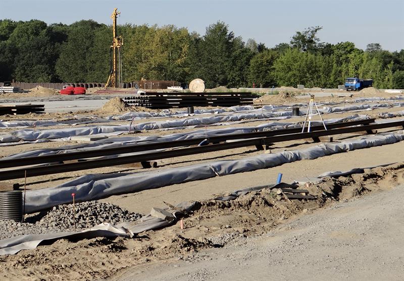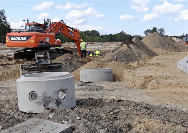 Na wysokości odcinka w kierunku Krzekowa w pasie ziemi przyległym do drogi prowadzącej do wojskowej strzelnicy pierwsza połowa lata upłynęła na wbijaniu w grunt ścianek szczelnych, a teraz trwają tam prace przy palowaniu. W specjalnej niecce (wytycza jej lokalizację wyniesiona ok. 3 m nad ziemię część konstrukcji stalowej) znajdą się trzy zbiorniki do odbioru deszczówki o wymiarach 70 m x 40 m x 5 m.