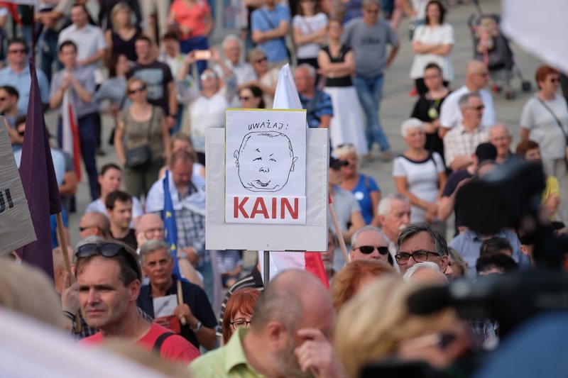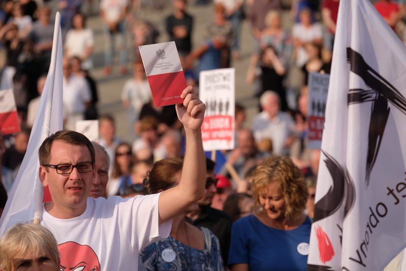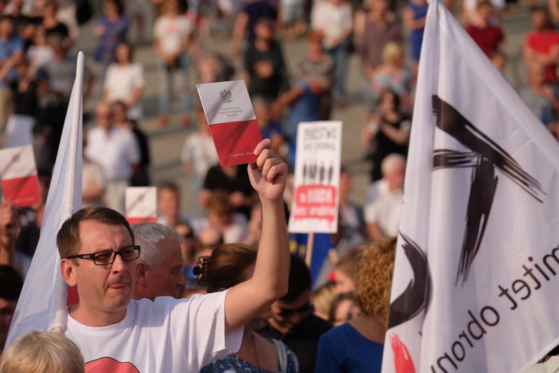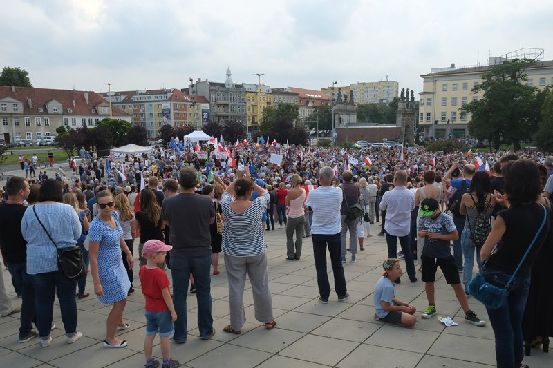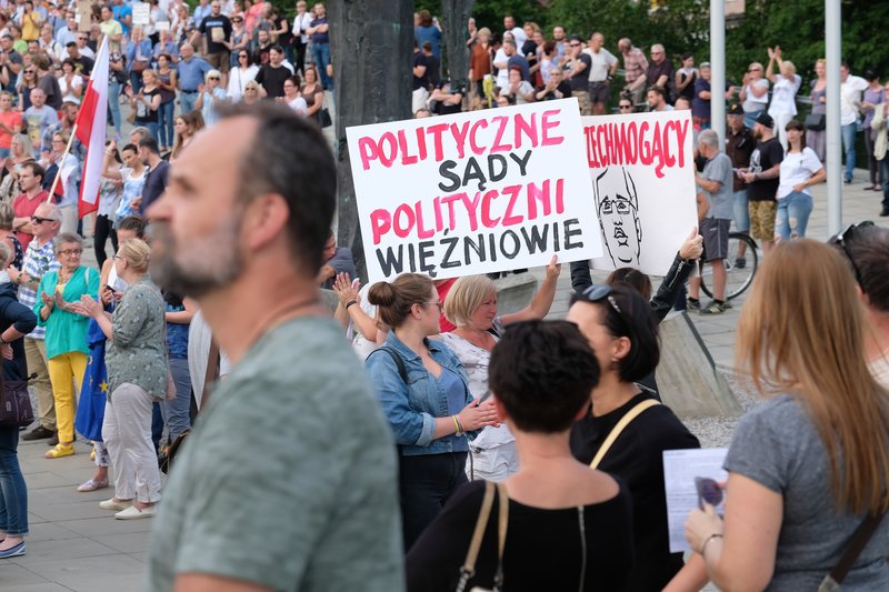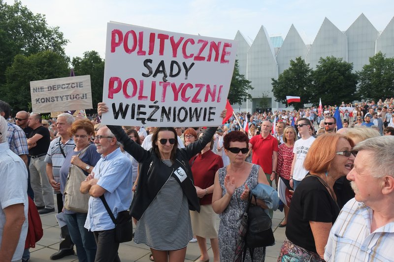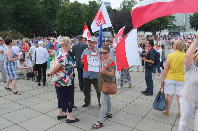 Przeciw zmianom w sądownictwie na pl. Solidarności