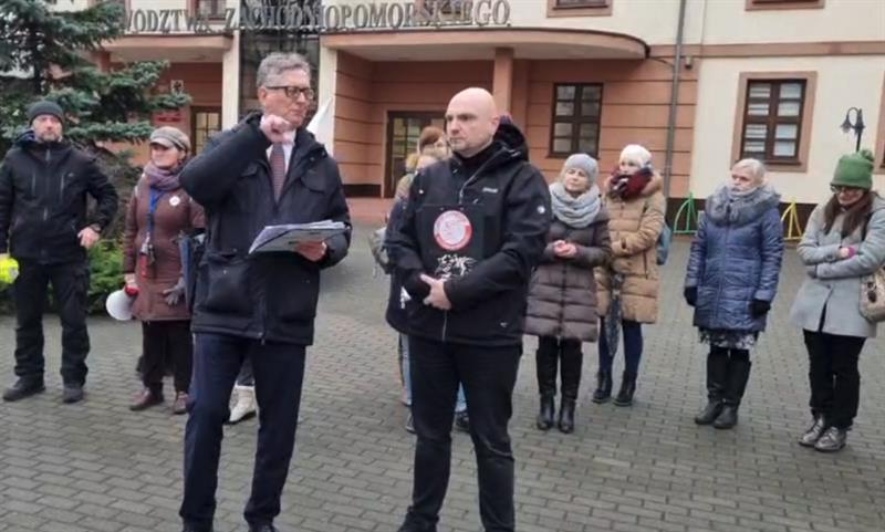 Konferencja prasową przed siedzibą Sejmiku Województwa Zachodniopomorskiego. Fot. Facebook