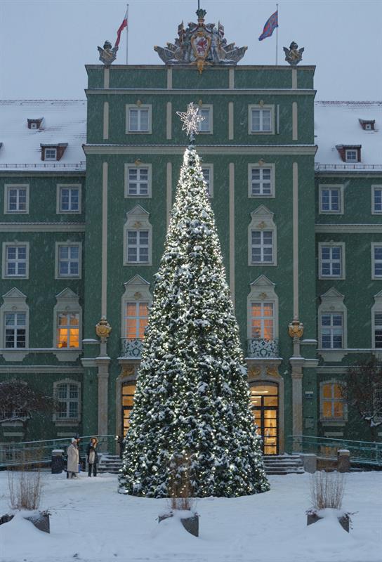 Zgodnie z zapowiedziami w mikołajki 6 grudnia choinka przed szczecińskim magistratem została rozświetlona tysiącem światełek. Najpiękniej wygląda w śnieżnej aurze, więc warto wybrać się na wieczorny spacer w okolice Urzędu Miasta. (K)
