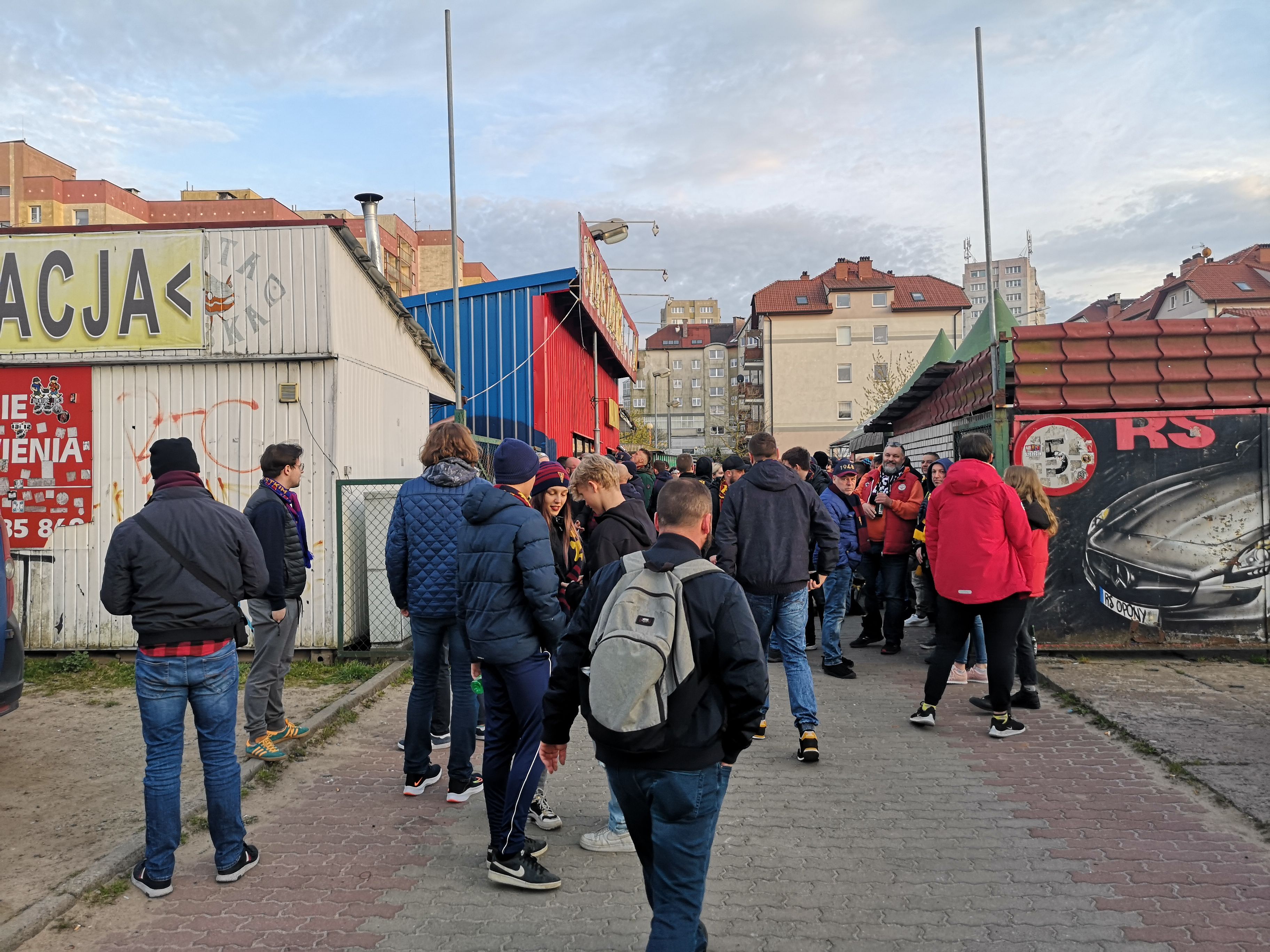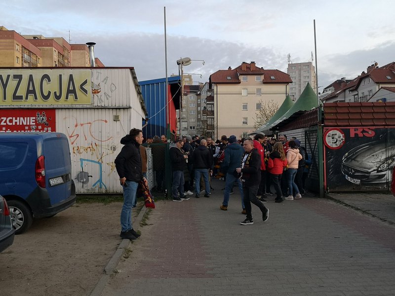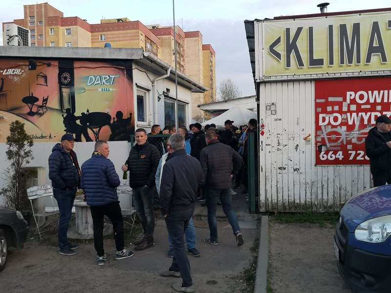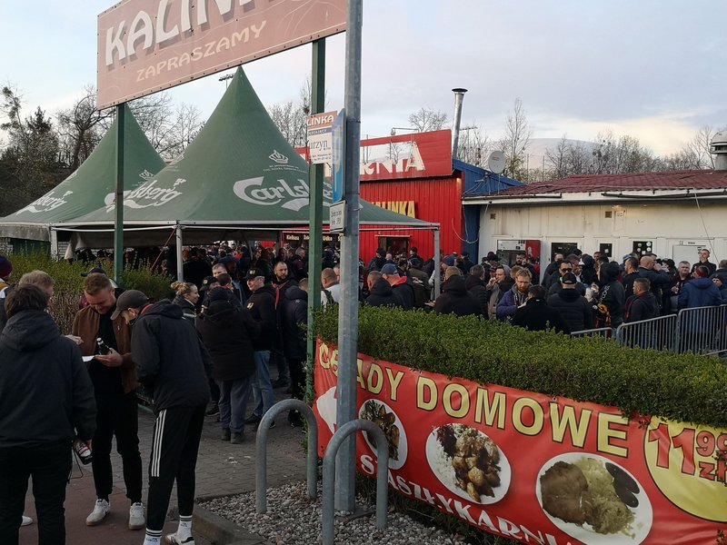 Przed rozpoczęciem meczu sezonu pomiędzy Pogonią a Rakowem Częstochowa okoliczne uliczki wokół stadionu Pogoni były zakorkowane. Wielu kibiców wykorzystało czas przed meczem na odwiedzenie dwóch punków sprzedaży piwa na ryneczku Kalinka przy ul. Witkiewicza, gdzie pod czujnym okiem policjantów spożywali złocisty trunek. Niektórzy pili alkohol i piwo, które znajdowało się w bagażnikach samochodów, które służyły za bar na kółkach. Potem wszyscy ubrani w barwy klubowe udali się na stadion, by dopingować swoich idoli.
