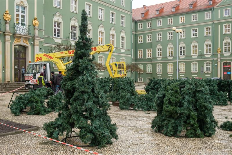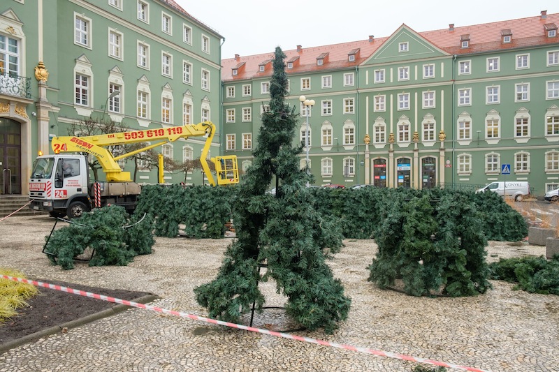 Instalacja sztucznego drzewka, które większość roku spędza w magazynie, rozpoczęła się w środę (1.12) i potrwa 3 dni. Choinka ma 12 m wysokości, a średnica u podstawy wynosi 5 m. Rozświetli ją ok. 10 tys. światełek, a na jej szczycie znajdzie się podświetlana gwiazda.