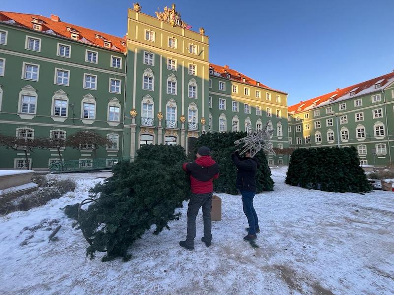 W niedzielne popołudnie można było zobaczy przygotowania do połączenia poszczególnych elementów świątecznego drzewa, m.in. wierzchołka, na którym rozbłyśnie bożonarodzeniowa gwiazda. Chwilę później rozpoczęło się ich łączenie w jedną całość.