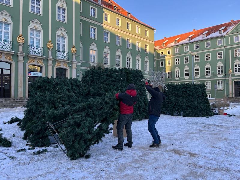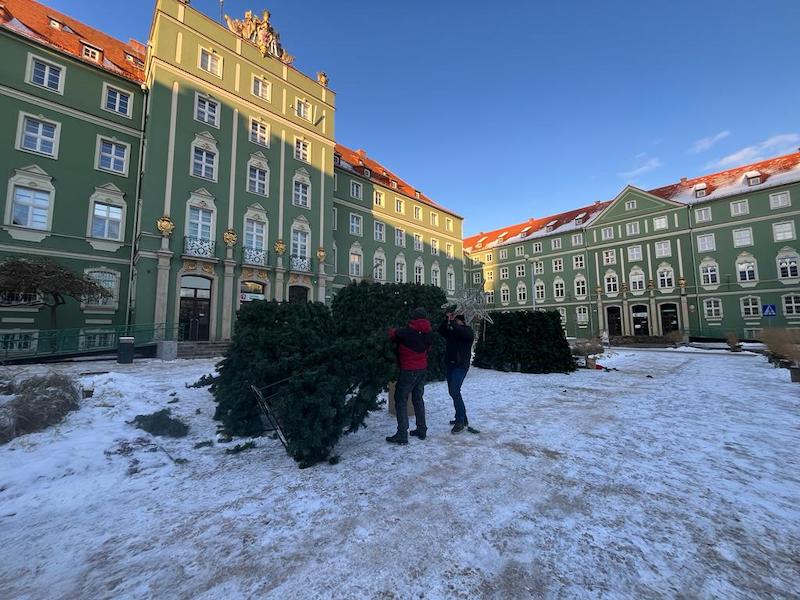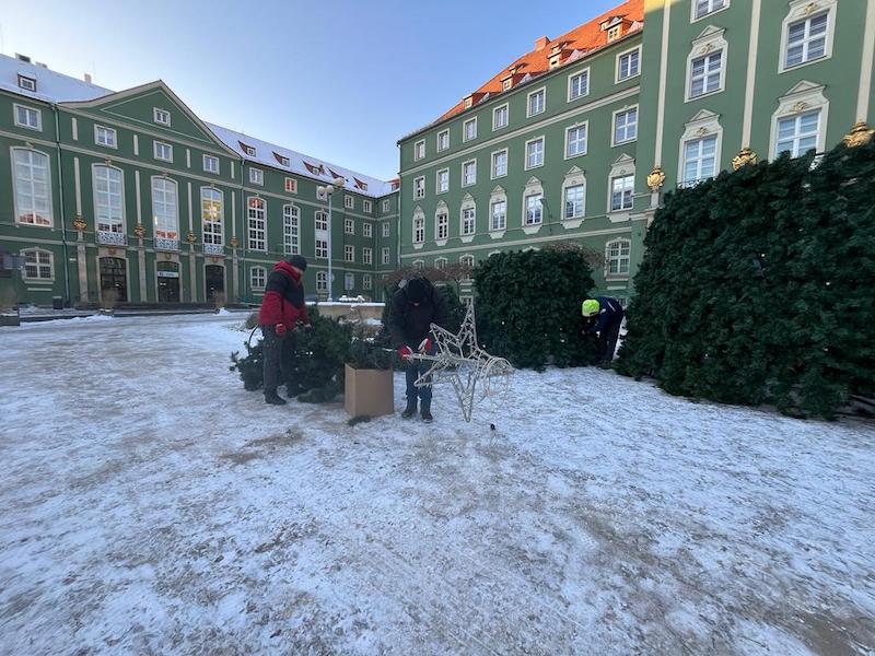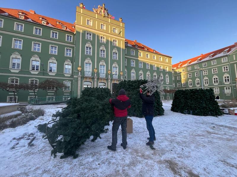 Zgodnie z wcześniejszymi zapowiedziami w niedzielę przed szczecińskim magistratem na placu Armii Krajowej rozpoczął się montaż choinki.