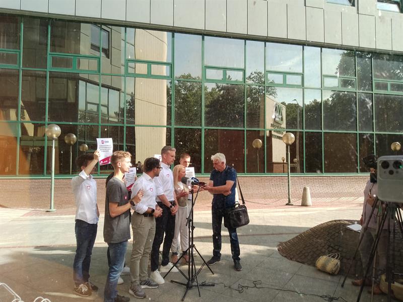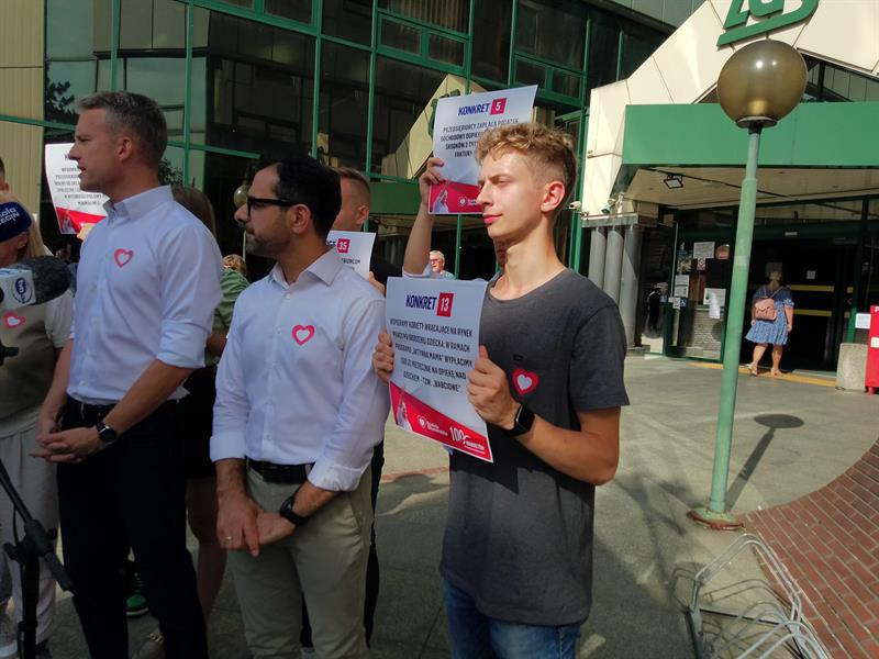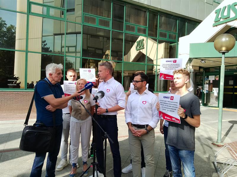 Konferencja KO odbyła się przed siedzibą ZUS w Szczecinie. Fot. Krzysztof Żurawski
