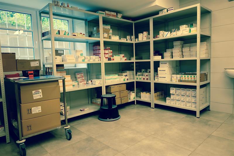 W tej szpitalnej aptece przygotowywane są leki dla pacjentów tej placówki. Budynek od 1932 roku był willą dyrektora szpitala.