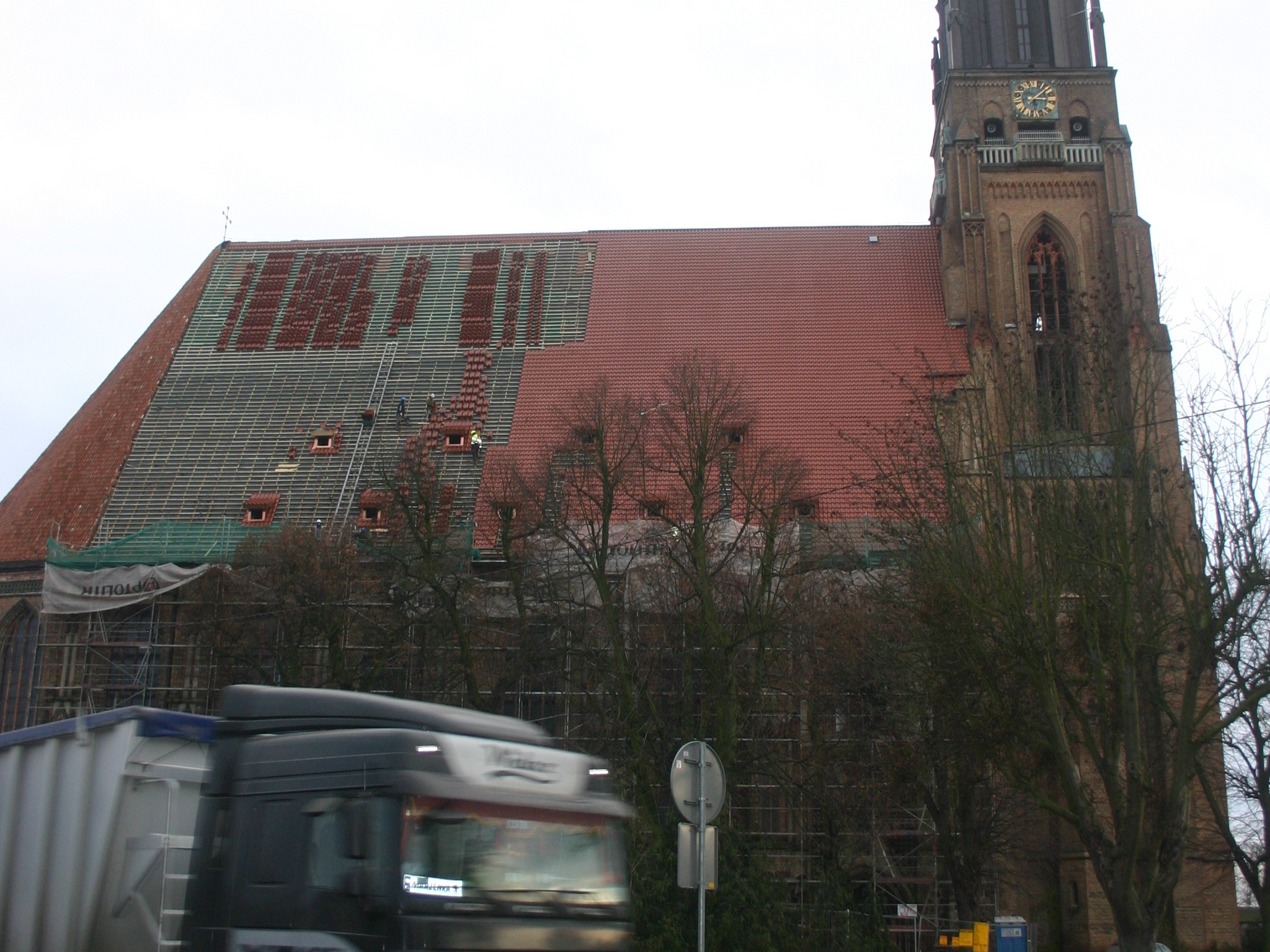 Wymiana poszycia na wyjątkowo dużym kościelnym dachu to gigantyczne przedsięwzięcie. Do jego pokrycia potrzeba aż 126 tysięcy ceramicznych dachówek.