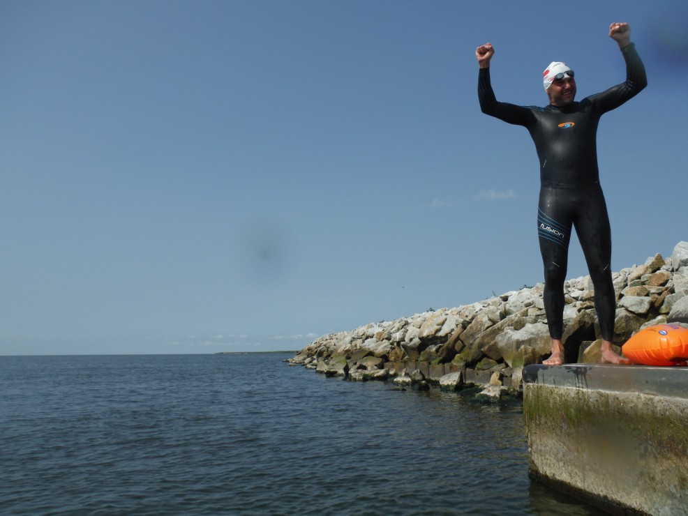 Na zdjęciu: Michał Stefaniak, instruktor ratownictwa wodnego dokonał kolejnego niezwykłego wyczynu. Przepłynął 8-kilometrowy odcinek pomiędzy małym i dużym Zalewem Szczecińskim w czasie trzech godzin.