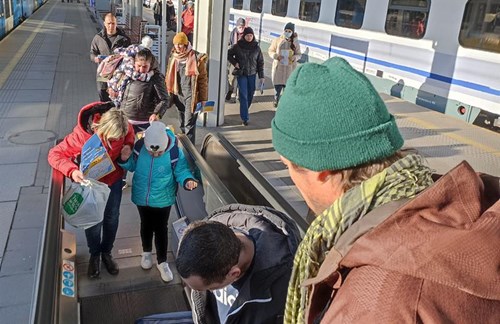 Kolejne rodziny, uciekające przed wojną z Ukrainy, dotarły w poniedziałkowy poranek do Szczecina. Z pociągu, który przyjechał z Przemyśla, wysiadło kilkanaście osób. Na wszystkich czekali wolontariusze z kanapkami i napojami.