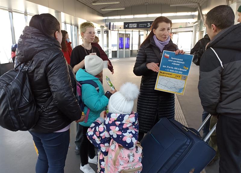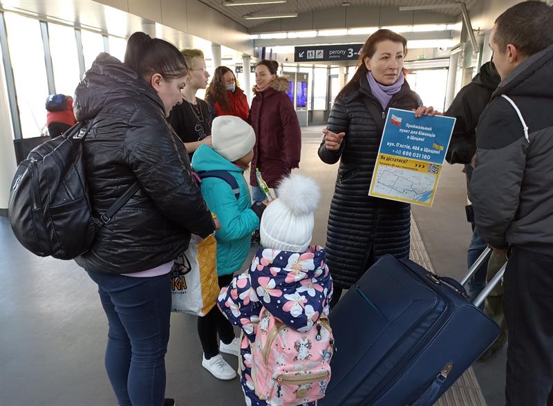 Bez dachu nad głową jest za to kobieta, która z dwójką dzieci dotarła przemyskim pociągiem z okolic Lwowa. początkowo zainteresowana wsparciem ostatecznie przyjęła tylko poczęstunek dla dzieci. Zdecydowała, że pierwsze dni spędzi u rodziny szwagra, który przyjechał tym samym pociągiem. W tym czasie dzieci odpoczną wśród znajomych, a ona rozejrzy się za mieszkaniem i pracą. Otrzymała też informacje, jak dotrzeć do centrum pomocy działającego w al. Piastów 40a i zapewnienie, że otrzyma także pomoc w uzyskaniu miejsc w szkołach czy przedszkolach dla dzieci.