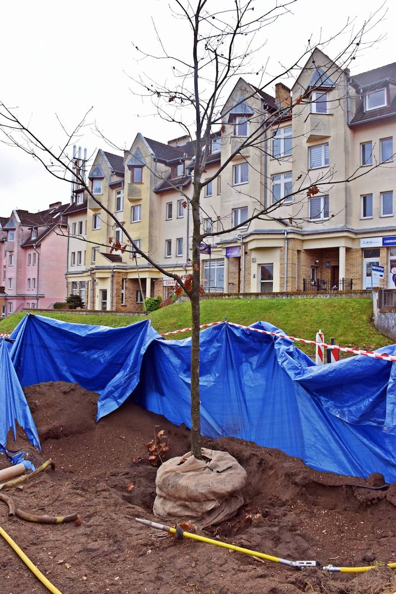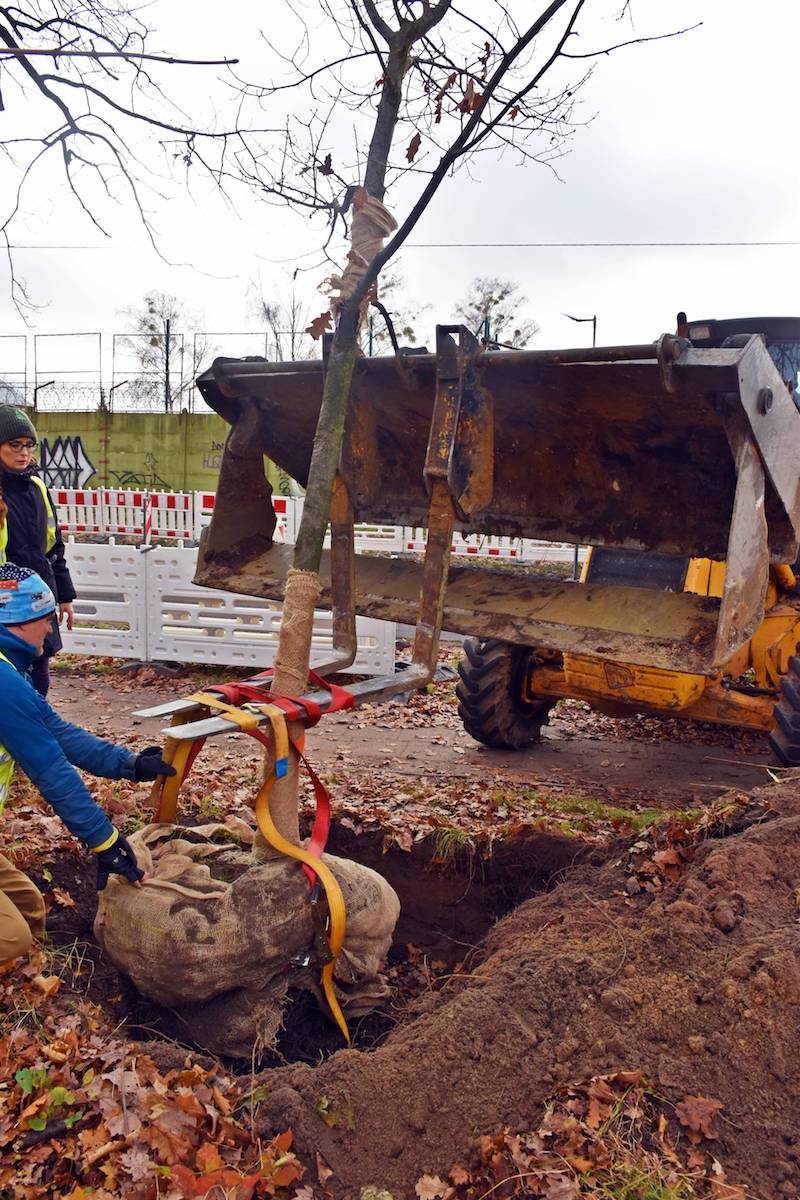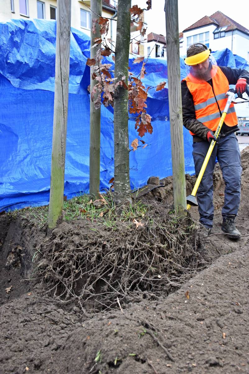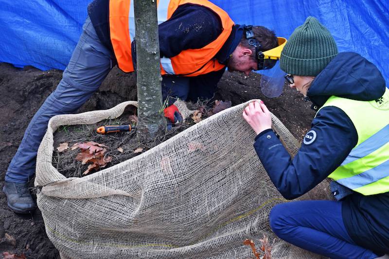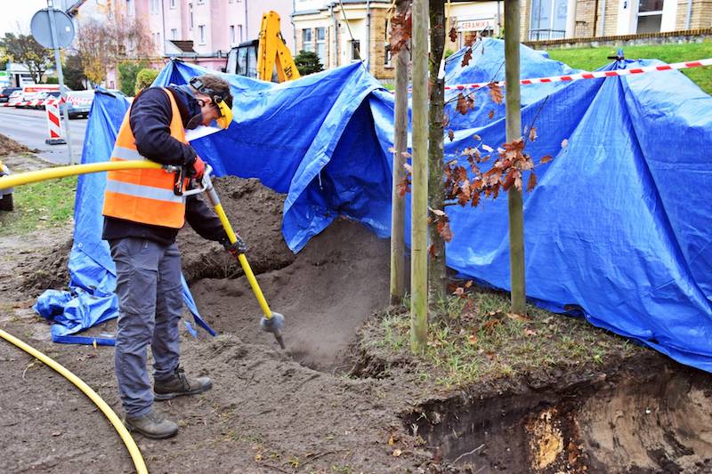 Z wykorzystaniem metody AirSpade w czwartek (18 listopada) rozpoczęło się przesadzanie trzech dębów na ulicy Modrej i Koralowej w Szczecinie. Akcja ma pozwolić na zachowanie drzewostanu na terenie inwestycji.