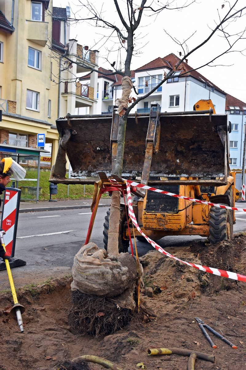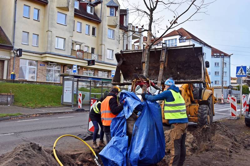 - Zastosowana metoda pozwala na rozluźnienie gruntu i wydobycie go, bez uszkodzenia struktury korzeniowej przesadzanego drzewa - wyjaśnia Piotr Zieliński, rzecznik prasowy spółki Szczecińskie Inwestycje Miejskie, która sprawuje nadzór nad inwestycją. - Są to prace znacznie szybsze, bezpieczniejsze i mniej szkodliwe dla drzew w porównaniu do innych metod. Choć pierwsze z przesadzanych drzew nie było dużych rozmiarów, to operacja zajęła ponad trzy godziny - relacjonuje rzecznik.