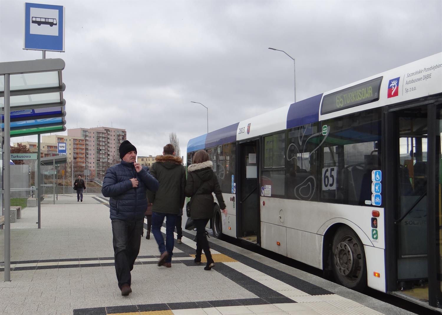 Do pętli Turkusowa – nie licząc innych zmian, jakich dokonał ZDiTM w siatce komunikacyjnej na prawobrzeżu i w połączeniach tej części Szczecina z lewobrzeżem – kursują teraz autobusy siedmiu zwykłych linii dziennych: 71 na osiedle Słoneczne z nawrotem przez rondo Ułanów Podolskich, 91 (tylko w godzinach szczytu w dni powszednie) przez osiedle Słoneczne i dalej ul. Pomorską do Zakładów Mięsnych, 54 do Kijewa, 55 (w szczytach tylko w dni powszednie) na osiedle Bukowe przez ul. Lnianą, 65 przez osiedla: Zdroje, Bukowe, Słoneczne z nawrotem do ronda Ułanów Podolskich, 84 przez osiedle Słoneczne, rondo Ułanów Podolskich, dalej do osiedli Zdroje, Bukowe i Kijewa oraz 79 przez Zdroje i dalej do osiedli: Słoneczne, Majowe, Kijewa, Płoni Śmierdnicy i Jezierzyc.