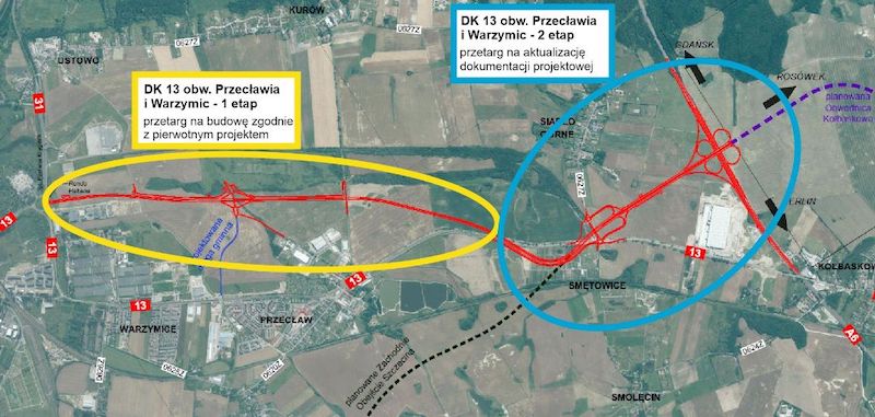 - W międzyczasie zaszła konieczność dokonania zmian w pierwotnym projekcie w obszarze węzła Szczecin Zachód, co również miało związek z ujęciem w Programie budowy 100 obwodnic obwodnicy Kołbaskowa w ciągu DK13. Spowodowało to podział inwestycji na dwa odcinki - wyjaśnia Mateusz Grzeszczuk.