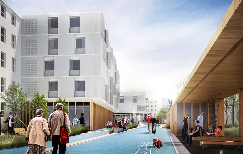 W parterze budynku zaplanowano urządzenie świetlicy środowiskowej, a także żłobka dla około 30. dzieci. Centralna część kwartału zostanie przeznaczona na główny plac publiczny. W ramach prac rewitalizacyjnych zaprojektowane zostały elementy małej architektury, akcenty rzeźbiarskie i nowa zieleń. Tej zieleni - wedle zapewnień przedstawicieli STBS - będzie bardzo dużo. Wzdłuż głównego placu, przez środek kwartału poprowadzona będzie pergola - zielone zadaszenie, pod którym znajdzie się miejsce spotkań mieszkańców i rekreacji. Z centralnego placu będzie można swobodnie przemieszczać się w stronę wszystkich podwórek w tym kwartale, do każdego budynku oraz do świetlicy środowiskowej i żłobka. Centralny plac ozdobi także mini amfiteatr, fontanna w formie posadzkowych dysz, z ławeczkami i zielenią.