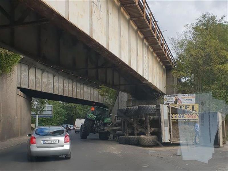 Na wysokości wiaduktów na ul. Batalionów Chłopskich przewróciła się naczepa ciągnięta przez traktor. Zablokowany jest jeden pas ruchu, co powoduje utrudnienia.