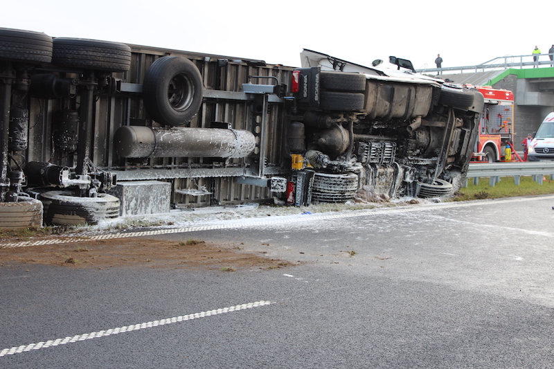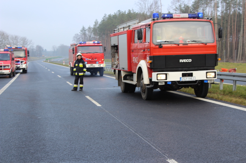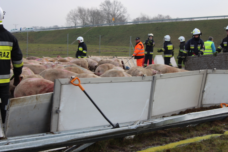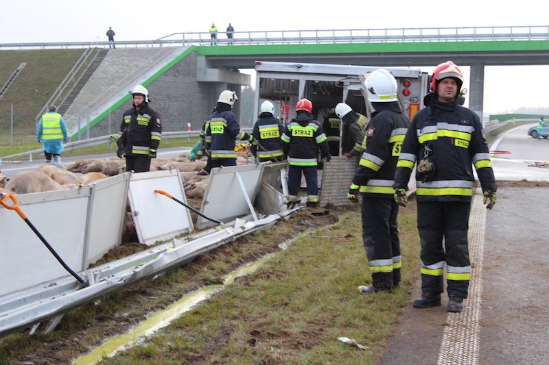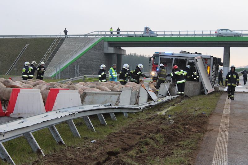 Z informacji służb wynika, że kierowca nie odniósł obrażeń. Z naczepy na drogę wydostały się jednak zwierzęta. Na miejscu interweniuje straż pożarna.