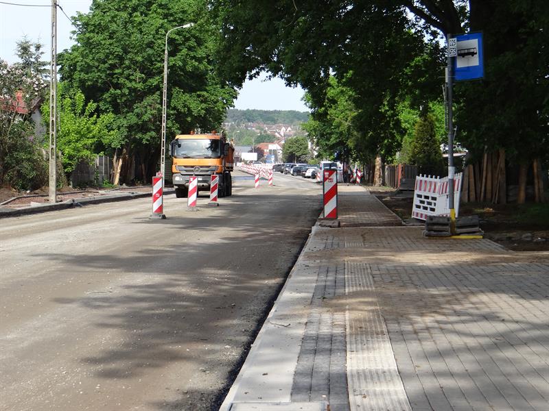 W tym tygodniu ruszyły tam prace z użyciem ciężkiego sprzętu przy układaniu mas bitumicznych na odcinku ul. Modrej od okolic skrzyżowania z ul. Wronią (na wysokości stacji benzynowej) w stronę nowego ronda przy skrzyżowaniu z ul. Szeroką. Dzięki nim z początkiem czerwca stanie się on przejezdny ponownie bez większych przeszkód w obu kierunkach. Drogowcy jednak i z tego rejonu nie znikną, bo do urządzania pozostają wciąż jeszcze chodniki w pasach poboczy. Gotowe są pasy z miejscami do parkowania, z części z nich kierowcy mogą korzystać już od dłużsczego czasu. ©℗