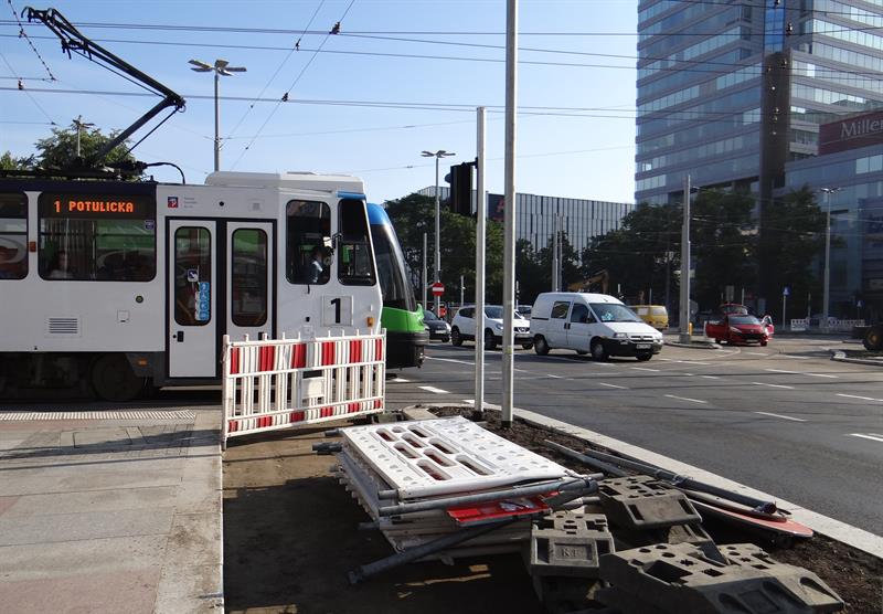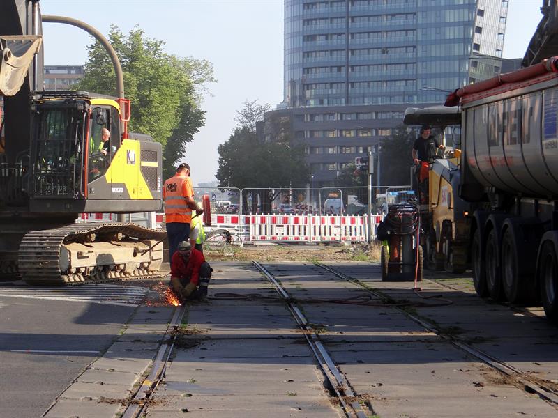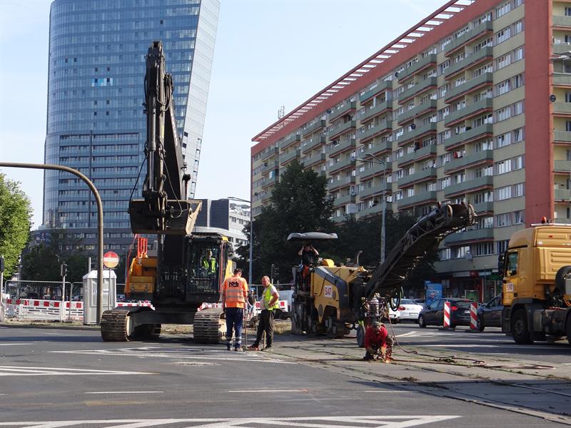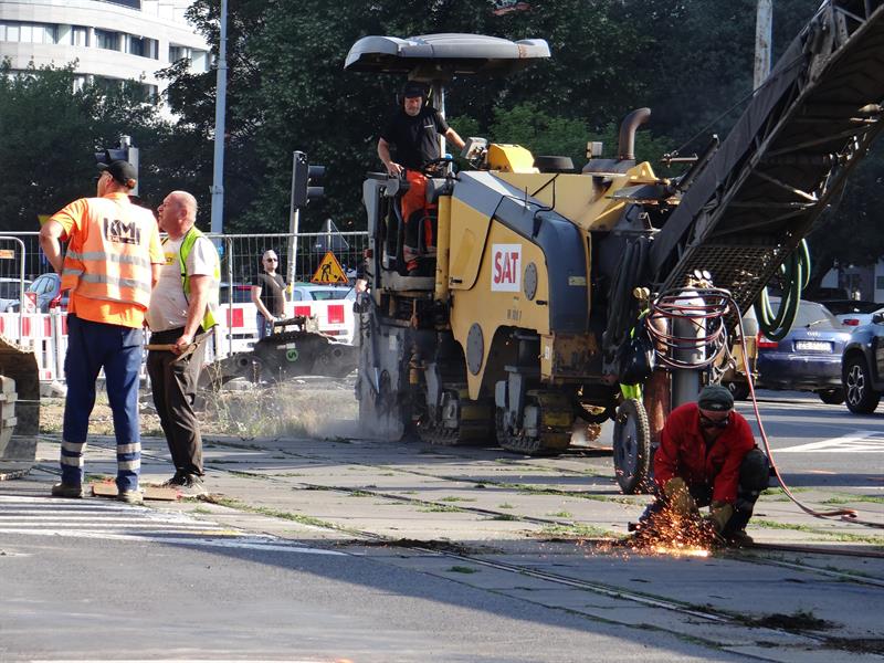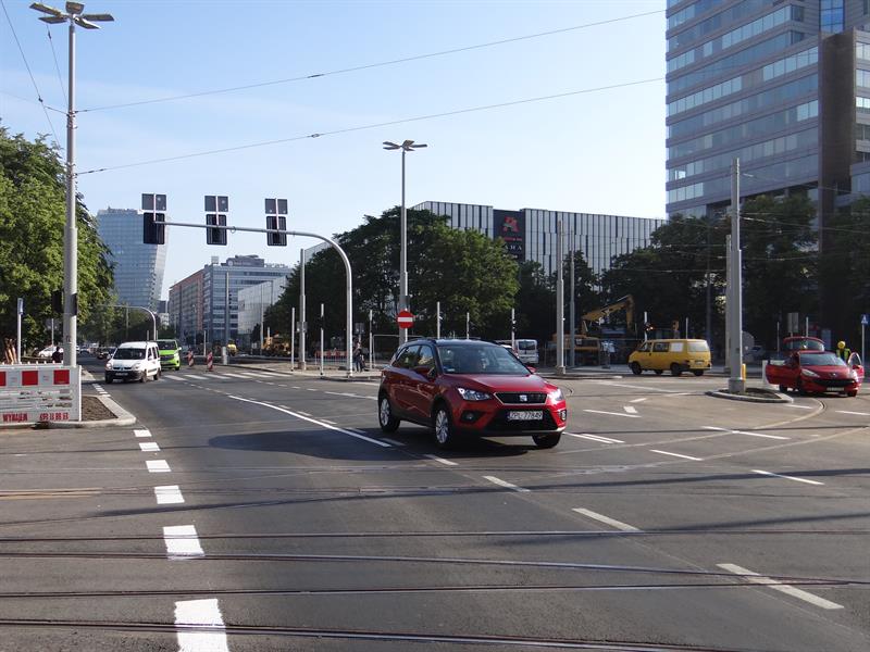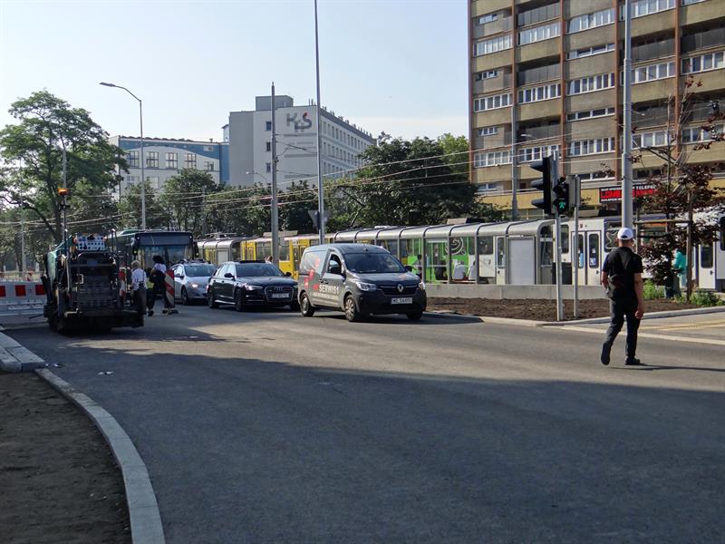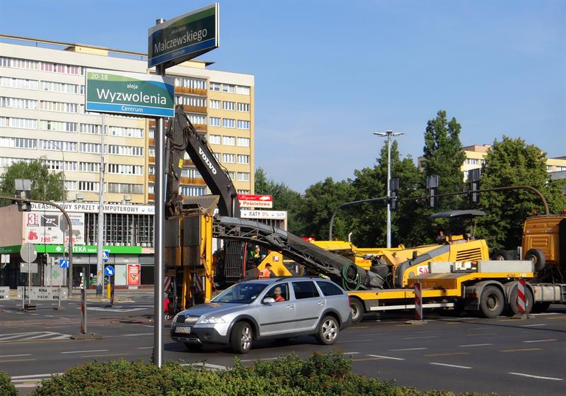 Równocześnie, czyli od 1 lipca, drogowcy ze spółki ZUE przymknęli częściowo przejazd ze starym odcinkiem torów przez przecinające al. Wyzwolenia skrzyżowanie z ulicami Rayskiego i Malczewskiego. Co oznacza brak możliwości skrętu w lewo z którejkolwiek relacji. Jazda w tym rejonie odbywa się tylko na wprost lub w prawo. Jeszcze tego samego dnia pojawił się tam ciężki sprzęt do zrywania starej nakładki asfaltu i od cięcia palnikami szyn ruszyły prace rozbiórkowe. Zmotoryzowani powinni jednocześnie pamiętać o obowiązujących zwężeniach do dwóch pasów ruchu na obu jezdniach w tejże al. Wyzwolenia między pl. Rodła aż do wysokości skrzyżowania z ulicami Odzieżową i Ofiar Oświęcimia. Lewe pasy przyległe do przebudowywanego torowiska pozostają wciąż wygrodzone z uwagi na stacjonujący i operujący tam nadal sprzęt budowlany. ©℗