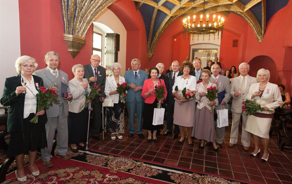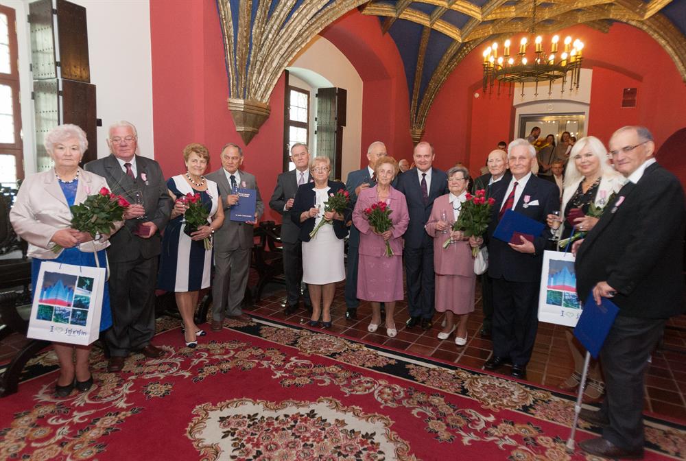 Piotr Krzystek, prezydent Szczecina, udekorował w poniedziałek Medalem za Długoletnie Pożycie Małżeńskie kilkanaście szczecińskich par, które przeżyły wspólnie 50 lub więcej lat.