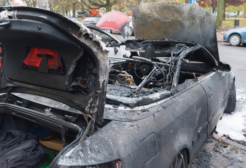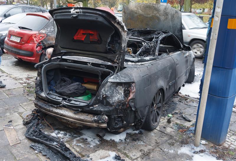 – Po przybyciu na miejsce strażacy zastali w pełni rozwinięty pożar samochodu marki Audi A4. Gaszono jedno auto, a pozostałe chroniono, by nie doszło do ich zapalenia. Mimo to sąsiadujące z audi samochody uległy uszkodzeniu – mają m.in. zbite szyby i odbarwienia. Nadpaleniu uległ także pobliski parkomat – poinformował nas mł. bryg. Piotr Tuzimek, rzecznik Komendanta Miejskiego Państwowej Straży Pożarnej w Szczecinie.