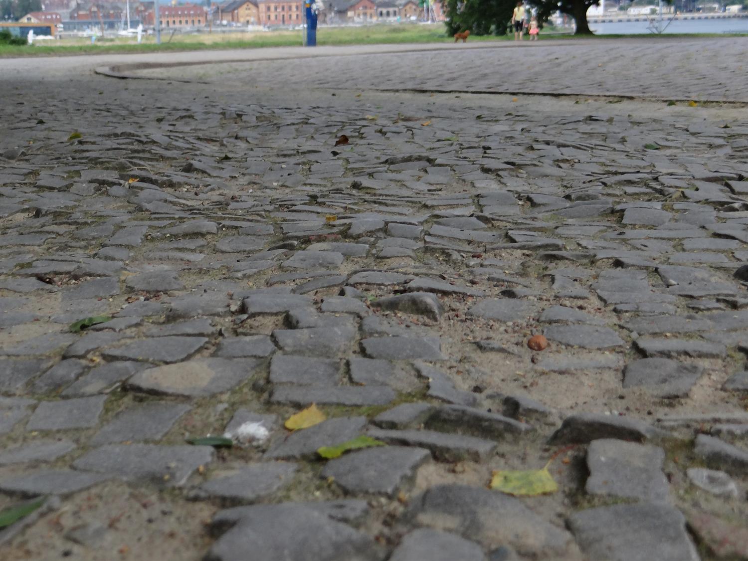 Choć szerokie, to chodniki pełne są kolein, zapadlisk, dziur, wyrw i walającej się kostki. Zabytkowa nawierzchnia jest kompletnie zdegradowana. W wielu miejscach widać liczne ślady po "wesołej twórczości" drogowych ekip naprawiaczy i układaczy, czyli "owoce" tej doraźnej łataniny. Wypełniacze z wszelkiej maści materiału, w licznych barwach i odcieniach oraz różnej wielkości. Taką niewątpliwie dodatkową i zarazem wątpliwą atrakcją te trotuary staną się znów podczas tegorocznego, po raz trzeci już organizowanego żaglowego święta w mieście.