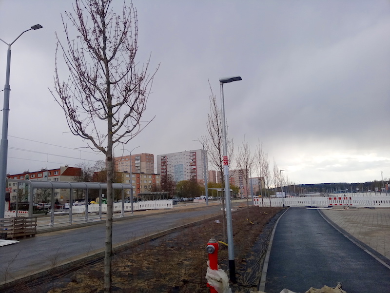 Przebudowa ul. Szafera w Szczecinie wkroczyła w końcową fazę. Oprócz postępów samej budowy można zauważyć też nowe nasadzenia drzew.