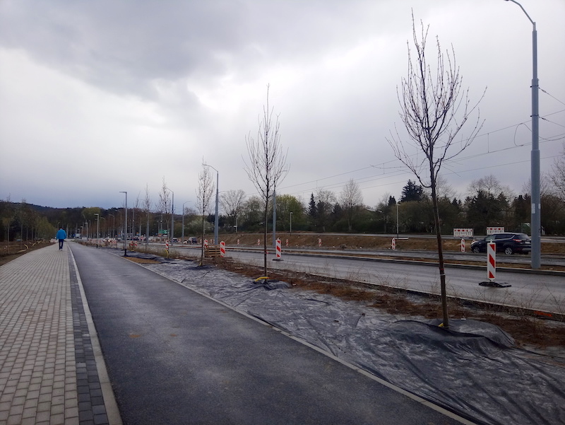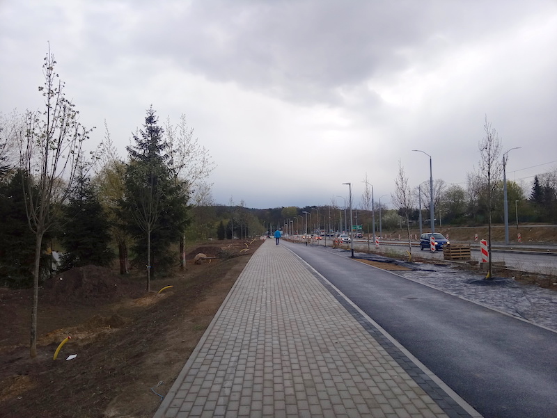 Na odcinku między rondem Olszewskiego, a Olimpijczyków w dwóch szpalerach, między jezdnią, a ścieżkami dla pieszych i rowerową, rosną już zasadzone kilkumetrowe klony. Trwają też nasadzenia drzew przy rondzie Olimpijczyków i ul. Szafera w kierunku Krzekowa. W sumie zostanie posadzonych ponad 270 klonów, buków i brzóz.