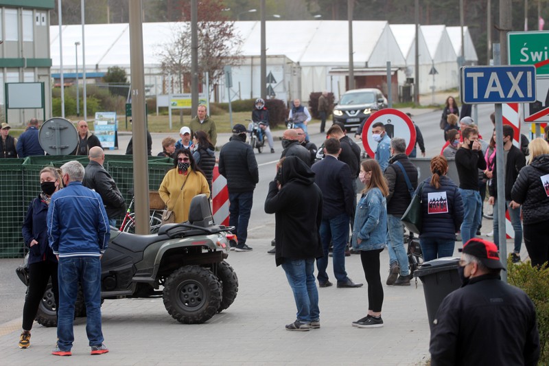 Niektórzy po wielu tygodniach zobaczyli się z bliskimi. Codziennie rozmawiają telefonicznie lub poprzez internet, ale protest był okazją, żeby – przynajmniej z daleka – zobaczyć się na żywo. Wszystko obserwowali policjanci, pogranicznicy i żołnierze Wojsk Obrony Terytorialnej.