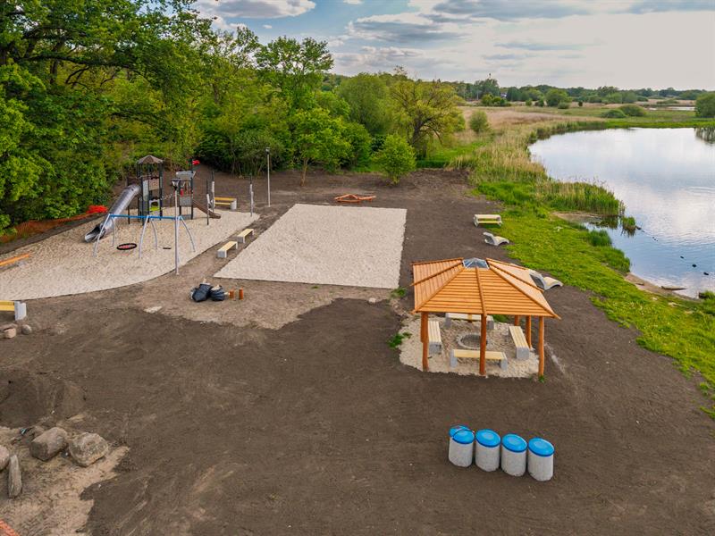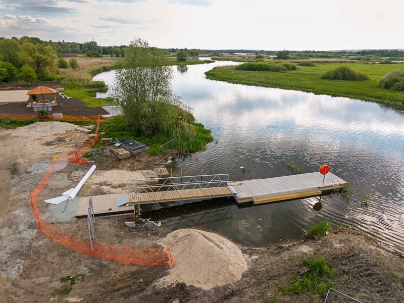 Nowa marina powstaje nad malowniczym Kanałem Kluckim, nieopodal ulicy Perkuna. Choć obecnie teren pozostaje placem budowy i obowiązuje zakaz wstępu, już teraz widać, że będzie to wyjątkowe miejsce wypoczynku. Prace wykończeniowe dobiegają końca, a obiekt zyskał już szereg udogodnień: plac zabaw dla dzieci, boisko do piłki plażowej, wiatę z miejscem na ognisko, ławki, leżaki, stoły piknikowe oraz oświetlenie. Całość uzupełni starannie zaplanowana zieleń.
