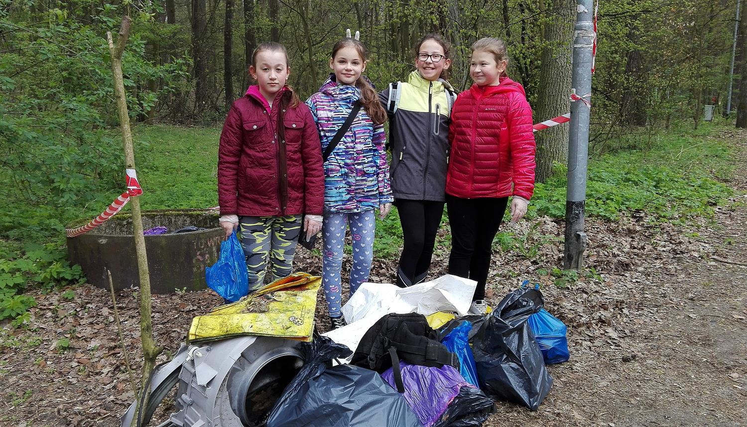 Karolina i Nikola Łukaszewicz, Wiktoria Kowalewska i Nell Kadmous z SP nr 68 nie kryły zaskoczenia skalą i różnorodnością swych znalezisk.