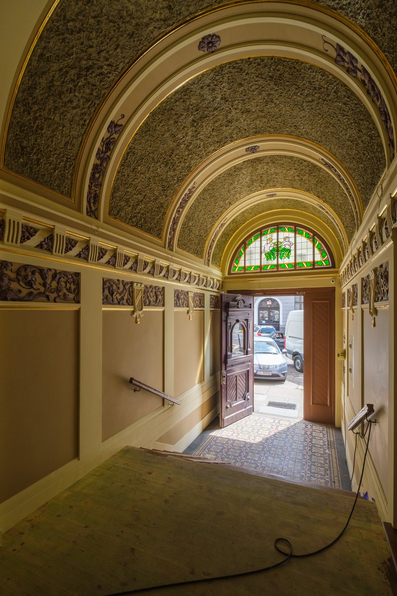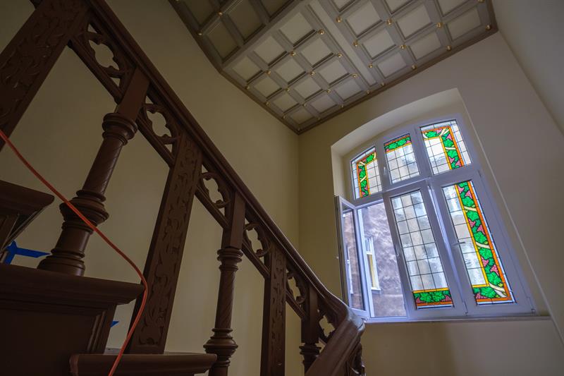 - Klatka była kompletnie zdewastowana. Wszędzie wystawały przewody elektryczne. Ściany pokrywała gruba warstwa olejnicy, którą trzeba było usunąć do gołego tynku. Musieliśmy naprawić sztukaterię, odtworzyć balustradę, z której na początku prac składała się tylko z kijków. Naprawiliśmy również schody. W oknie umieściliśmy prawdziwe witraże. Ogrom czasu i pracy - podsumował nasz rozmówca.