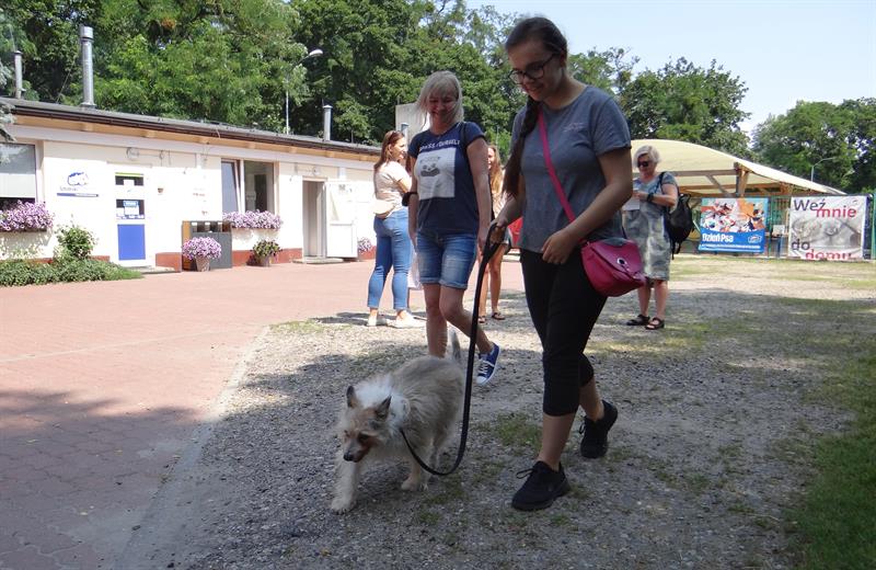 Nicola ma niespełna 13 lat, więc dopiero za kilka lat będzie mogła spełnić swe marzenie o wolontariacie w schronisku. Natomiast teraz… trzyma na smyczy Foxi (239/21), która rozpacz porzucenia próbuje zagłuszyć jedzeniem. To biszkoptowa dziesięciolatka: spokojna i cichutka psina o posiwiałym pyszczku. Wzrostem poniżej kolana. Krępej budowy ciała. Seniorka o krzywych nóżkach, która przyspiesza niemal tylko na widok jedzenia. Uwielbia przysmaki, a odbiera je z rąk opiekunów z wyraźną wdzięcznością i nadzwyczaj delikatnie.